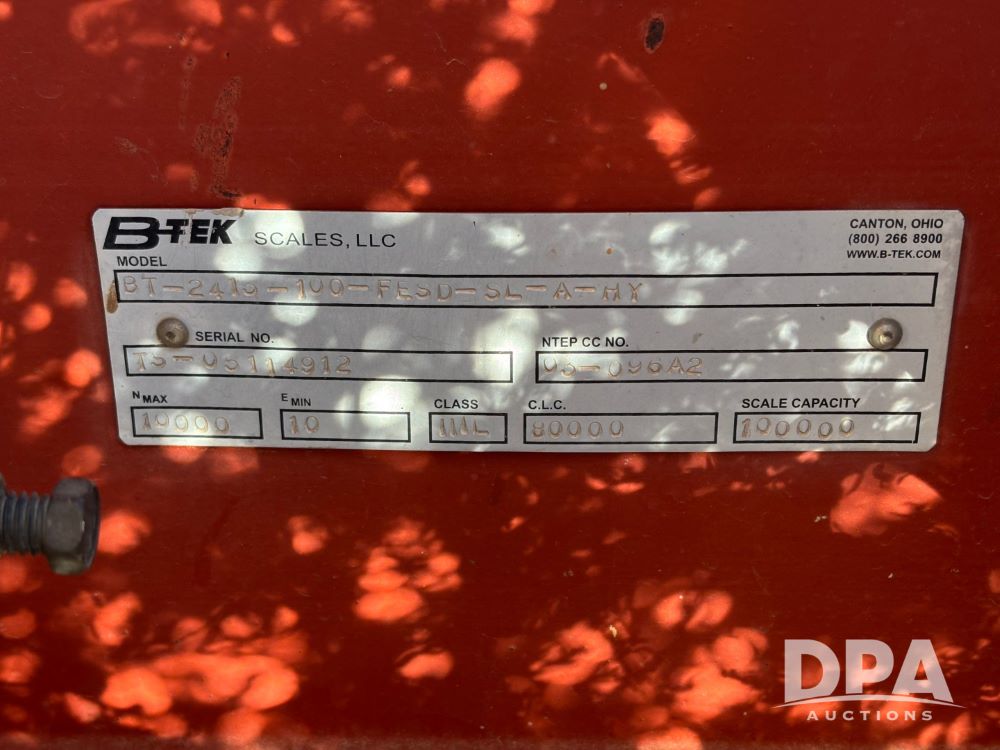 B-Tek Above Ground Scale (GP12093), B-Tek above ground scale, Model BT-2415-100-FESD-SL-A-HY, approx. 12' x 24', scale capacity 100,000 pounds.