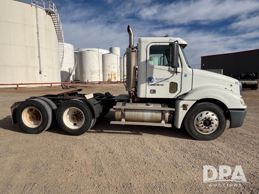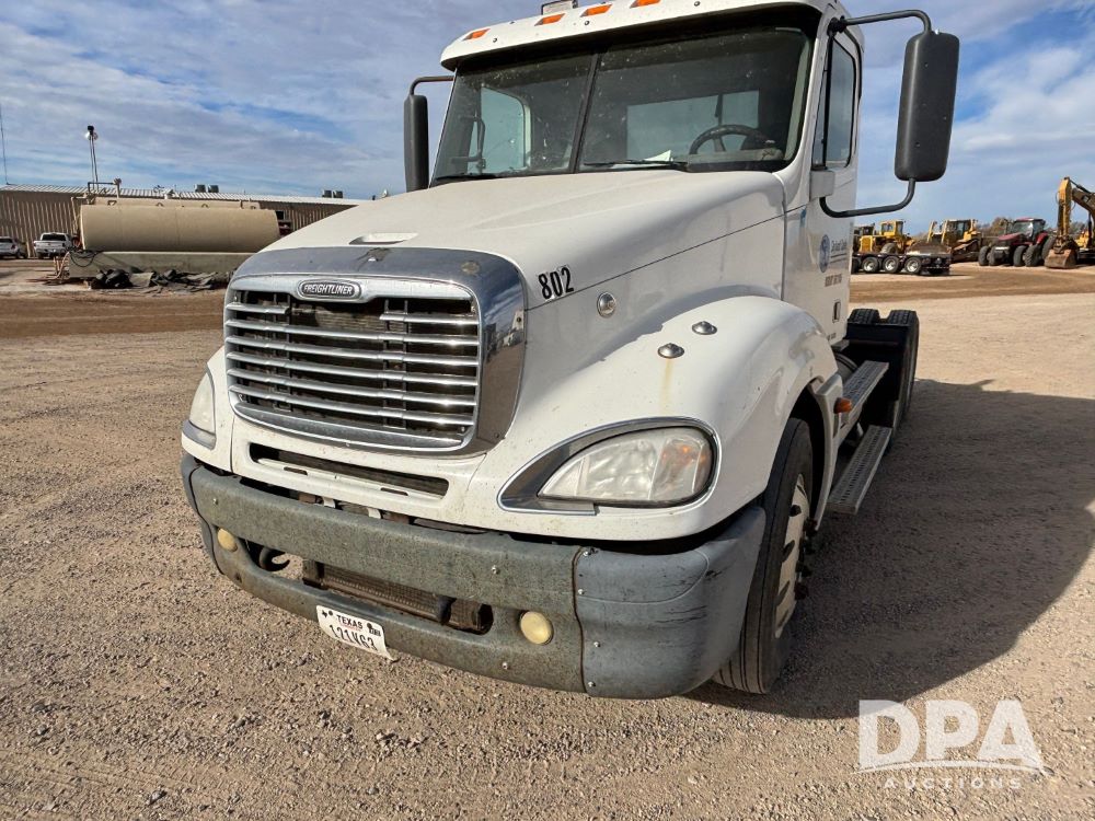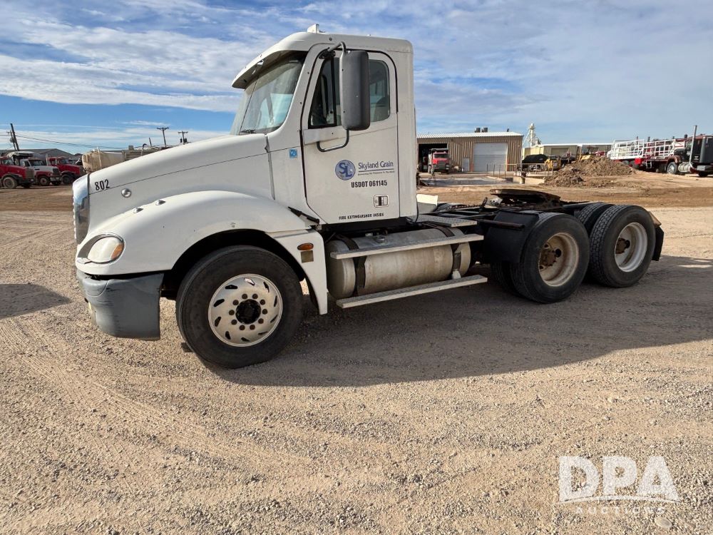 2006 Freightliner Day Cab Truck (GP12099, Unit 802), Detroit Series 60 diesel engine, Eaton 10 speed transmission, heat, Am/Fm radio, tandem axle, air ride suspension, 5th wheel plate, dual fuel tanks, single exhaust, 11R24.5 tires, GVWR 52,000 pounds, shows 850,996 miles.