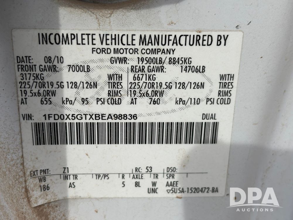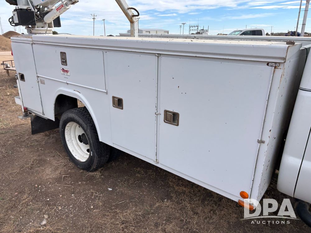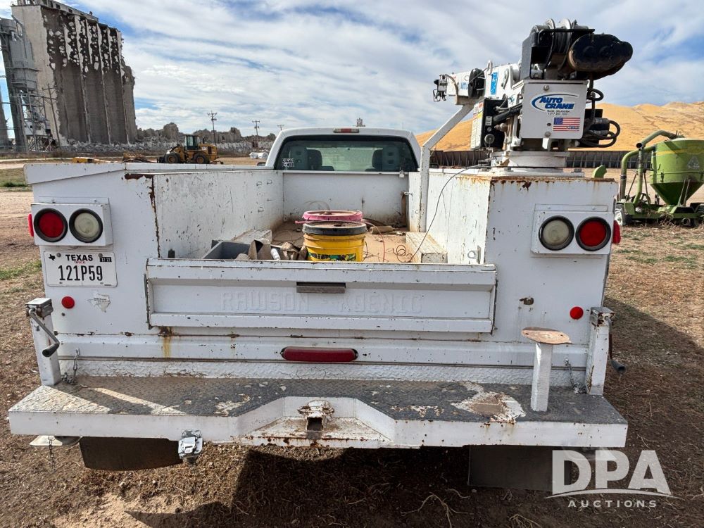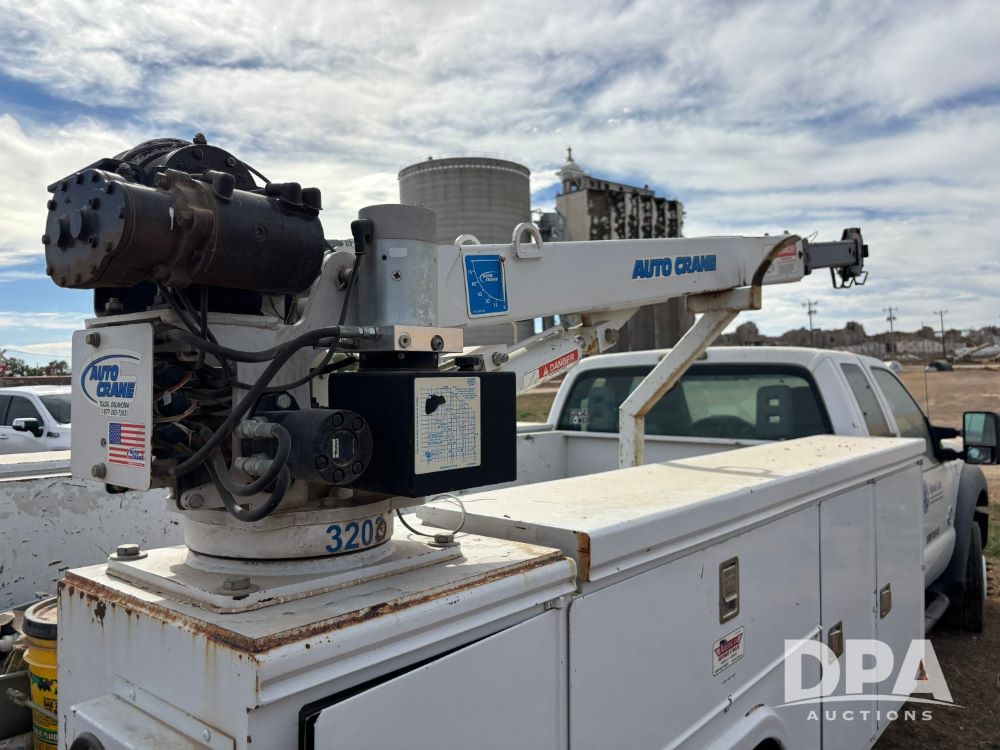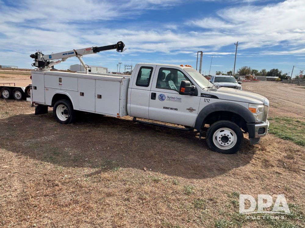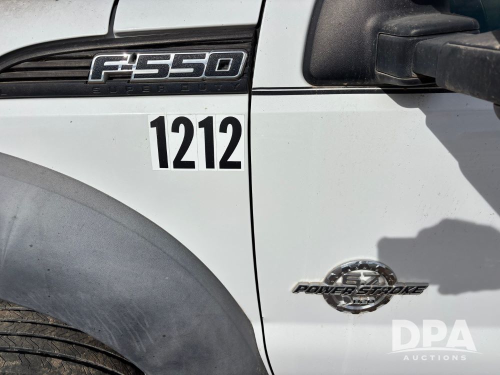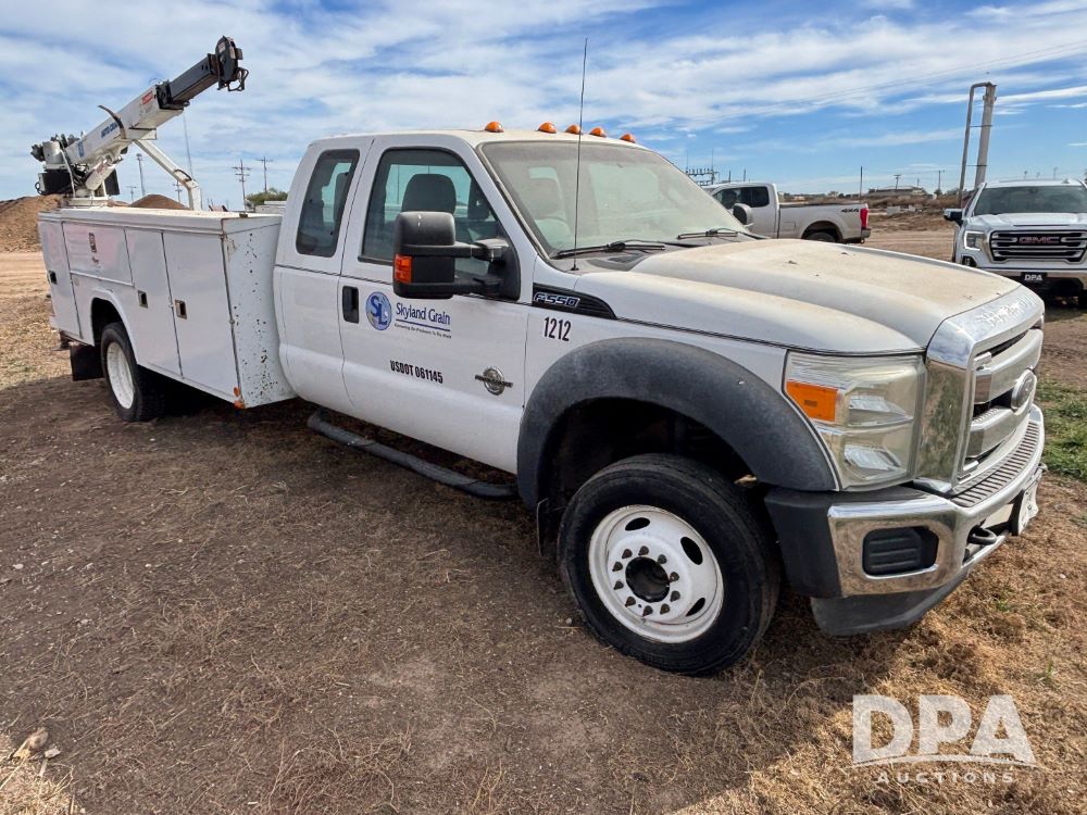 2011 Ford F-550 Super Duty Service Truck (GP12103, Unit 1212), extended cab, Power Stroke diesel engine, automatic transmission, heat, Am/Fm radio, power windows, locks and mirrors, cruise control, rear 8 door service body, Auto Crane Model 3203 PRX crane, (2) rear stabilizers, dually, running boards, 225/70R19.5 tires.