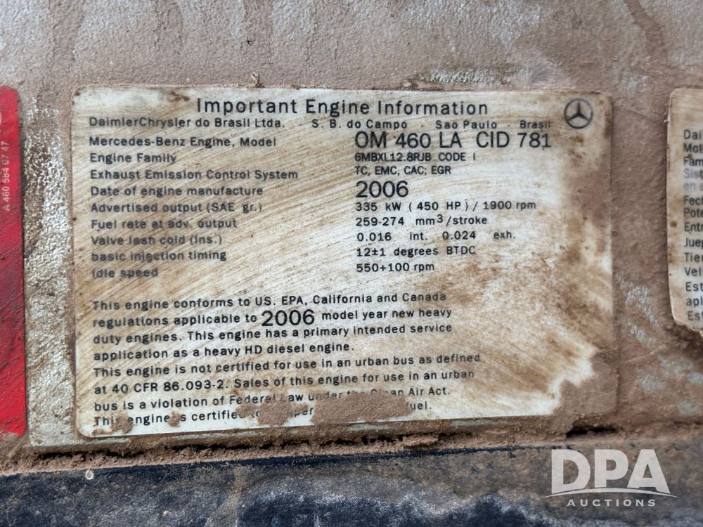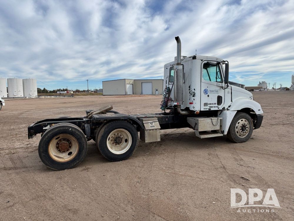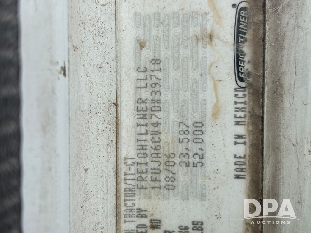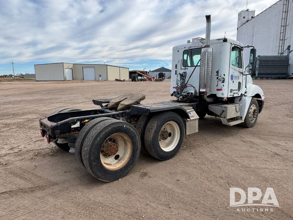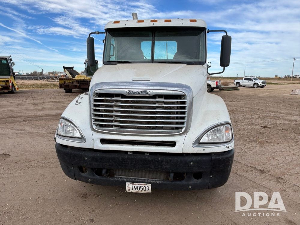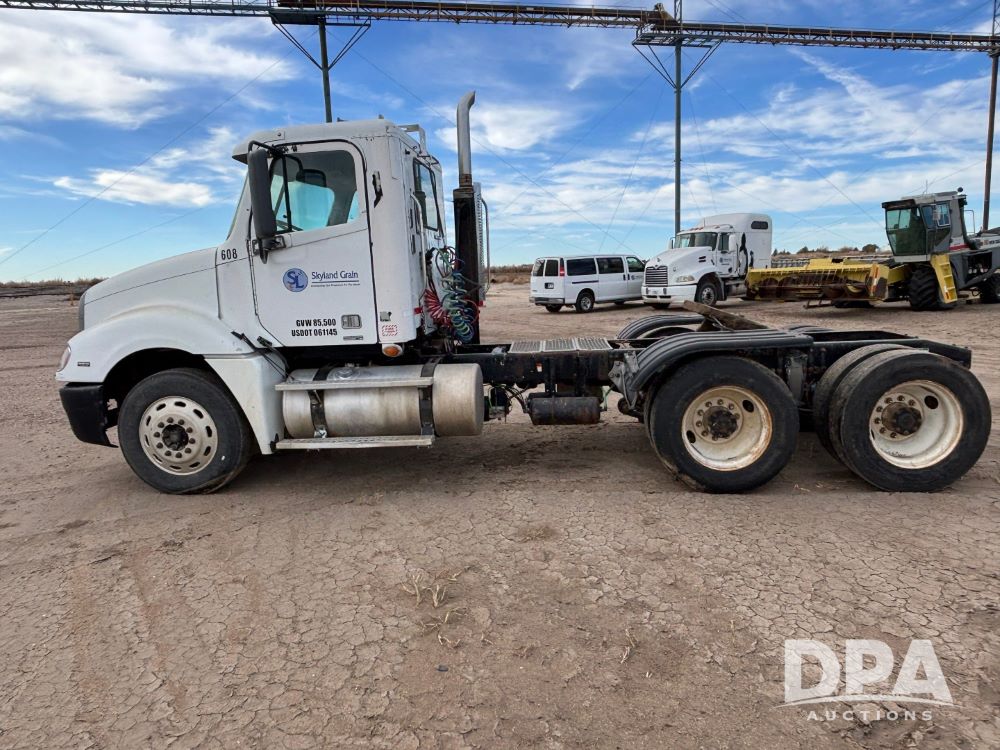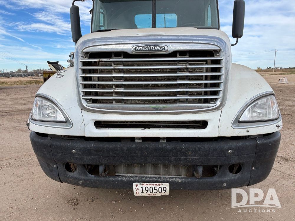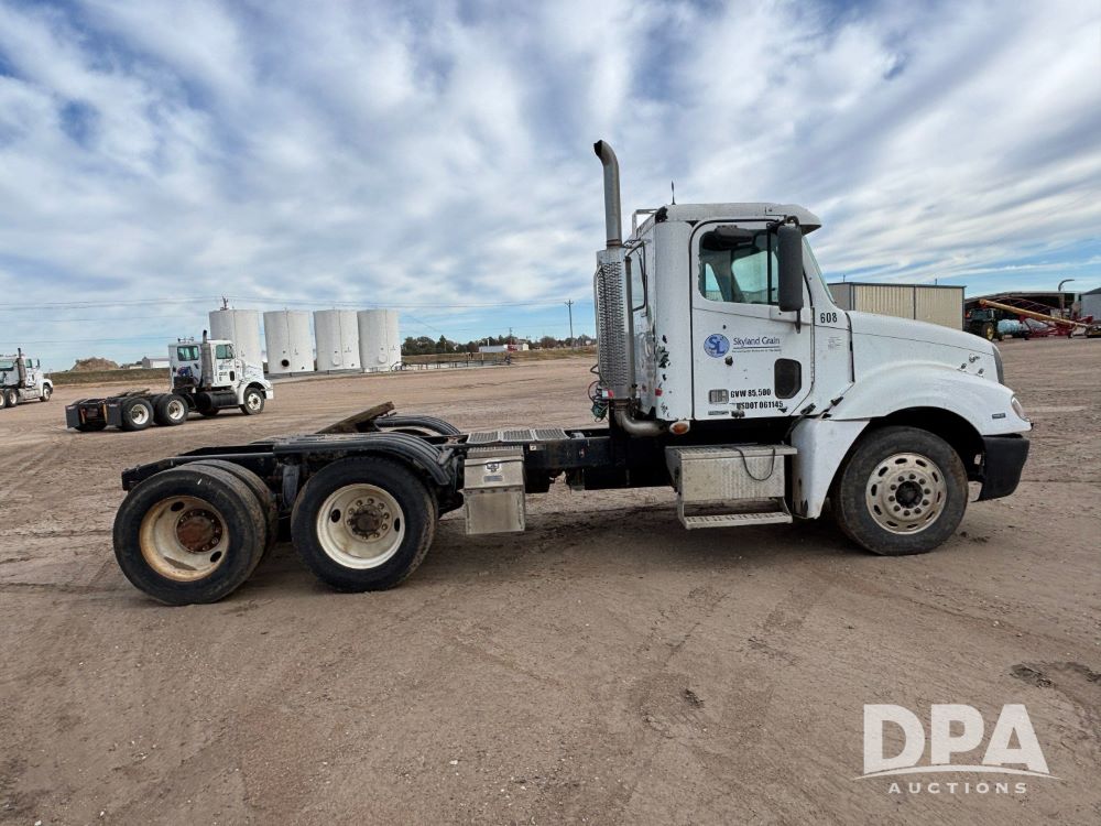 2007 Freightliner Columbia Day Cab Truck (GP12076, Unit 608), Mercedes-Benz diesel engine, Eaton Fuller 10 speed transmission, heat, Am/Fm radio, tandem axle, air ride suspension, 5th wheel plate, single fuel tank, single exhaust, 285/75R24.5 tires, GVWR 52,000 pounds, shows 462,052 miles.