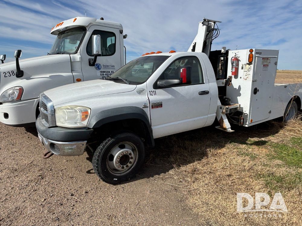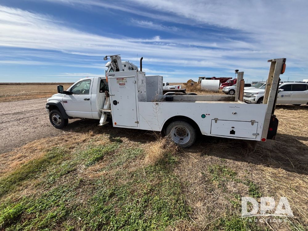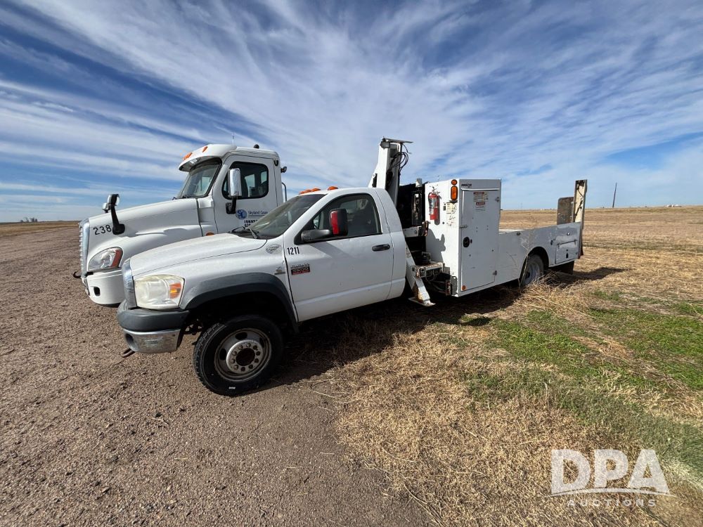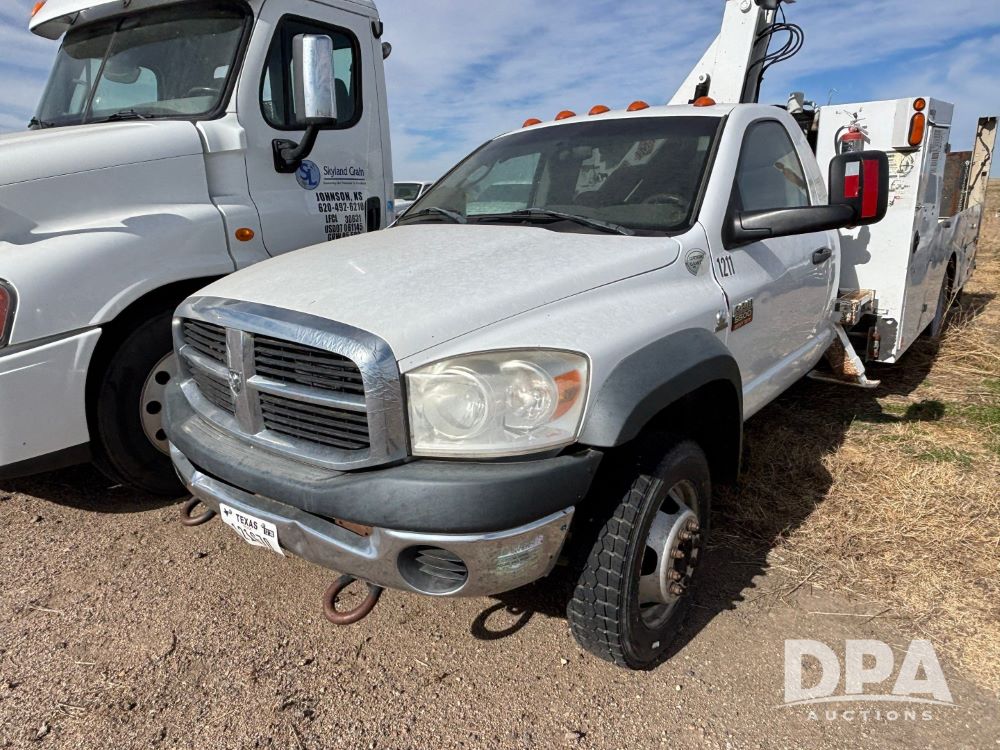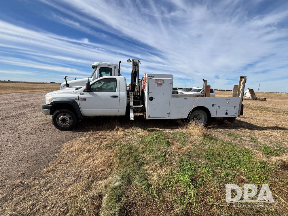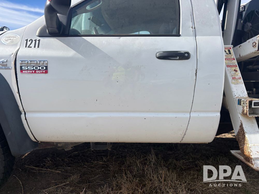 2009 RAM 5500 Heavy Duty Service Truck (GP12068, Unit 1211), regular cab, Cummins 6.7L turbo diesel engine, automatic transmission, heat, Am/Fm radio, cruice control, service body, IMT Series 3000 crane (shows 73 hours), (2) stabilizers, dually, 225/70R19.5 tires.