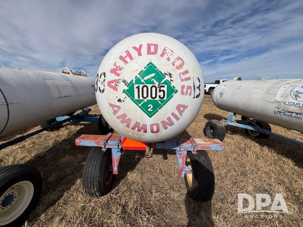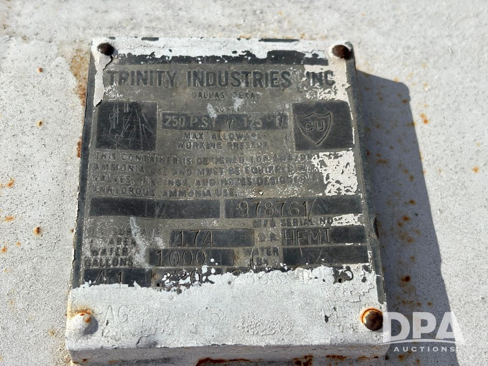 NH3 Nurse Tank (GP12052, Tank B33), Trinity Industries 1,000 gallon anhydrous nurse tank, top front fill, 4 wheel gear, 11L-15 flotation tires, water tank, data plate.