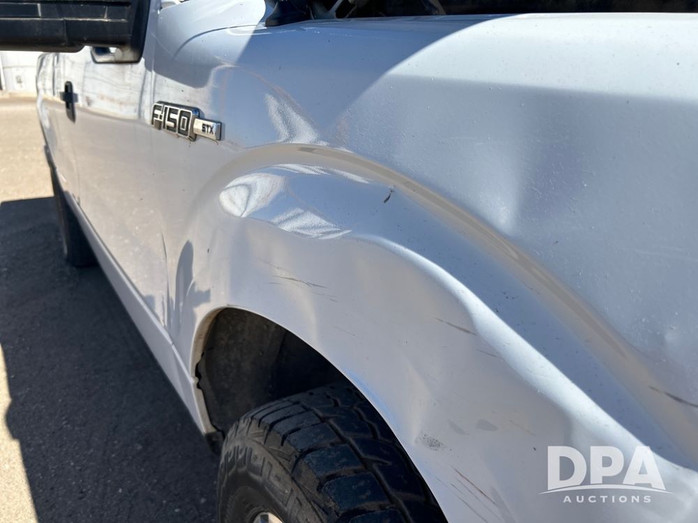 2014 Ford F-150 STX 4x4 Pickup (NP6277, Unit 869), extended cab, gas engine, automatic transmission, heat, Am/Fm radio, cruise control, bed liner, LT275/65R18 tires, shows 165,167 miles.