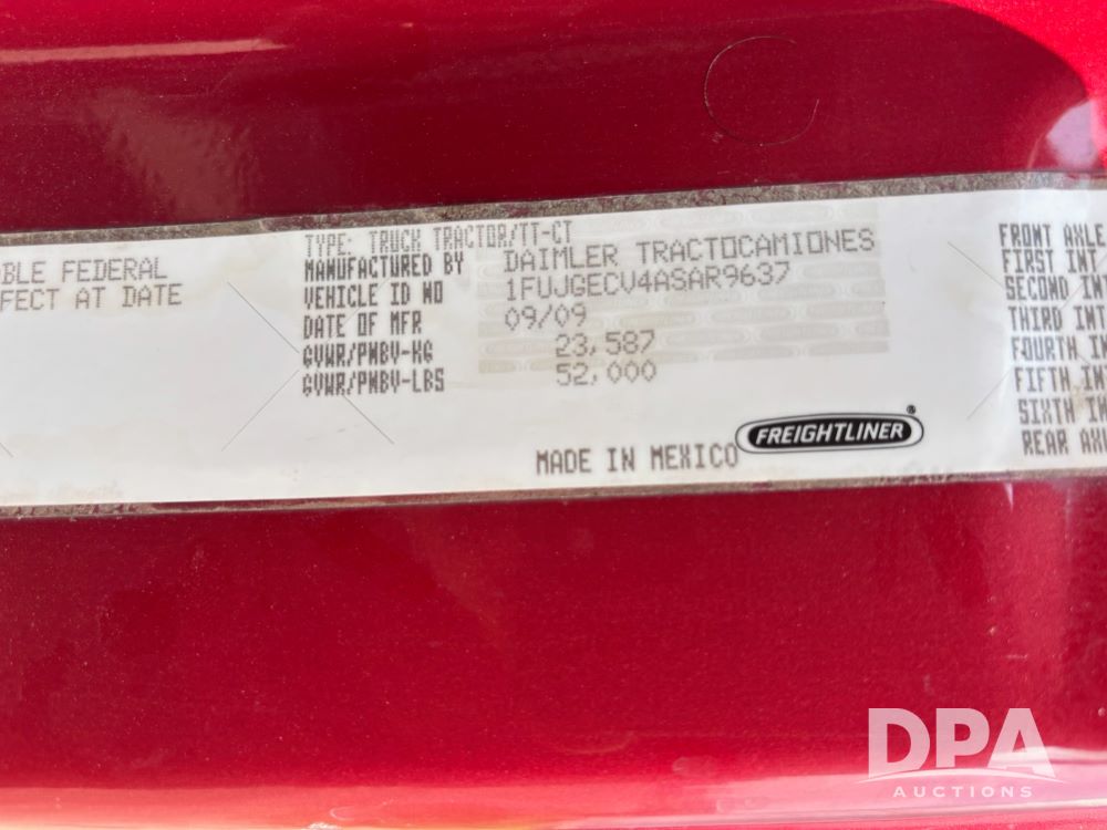 2010 Freightliner Cascadia Truck (ED5160), 2010 Freightliner 999 Cascadia truck, Mercedes Benz engine, automatic transmission, heat, air conditioning, radio, dual tanks, tandem axle, fifth slide, 11R22.5 tires, shows 528,937 miles.