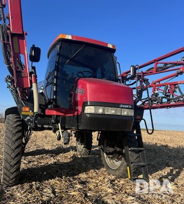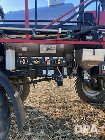 2011 Case IH Patriot 3330 Sprayer (ED5299), diesel engine, pre-emission, hydrostatic transmission, air conditioning, heat, Am/Fm CD radio, buddy seat, 1000 gallon stainless steel liquid system, 90' boom, foam marker, poly foam marker tank, stainless steel chemical inductor, front fill, Michelin Spraybib VF380/90R46 tires, fenders, Raven boom height control, Ag Leader Rightspot nozzle by nozzle spray control, Ag Leader monitor, 6500 RTK receiver, shows hours.
