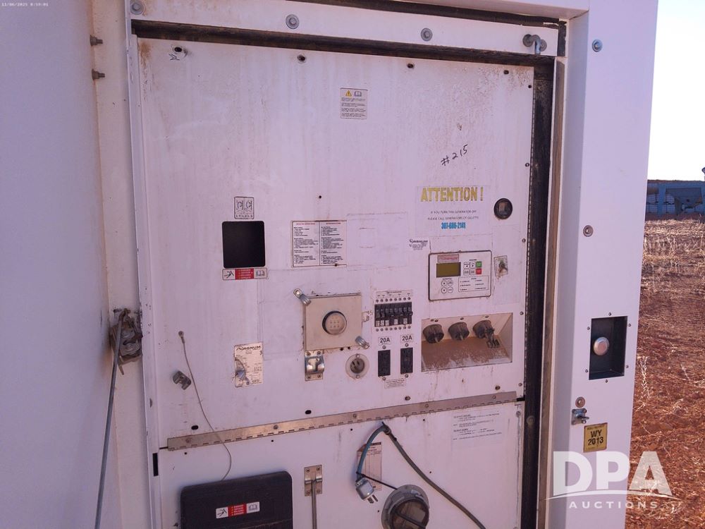 Generator Enclosure (LLD1475), multiple doors, mounts inside, radiator inside, control/breaker panel, sound and thermally insulated, skid type bottom, 13 footlong X 7 foot 6 inches high x 5 foot wide.