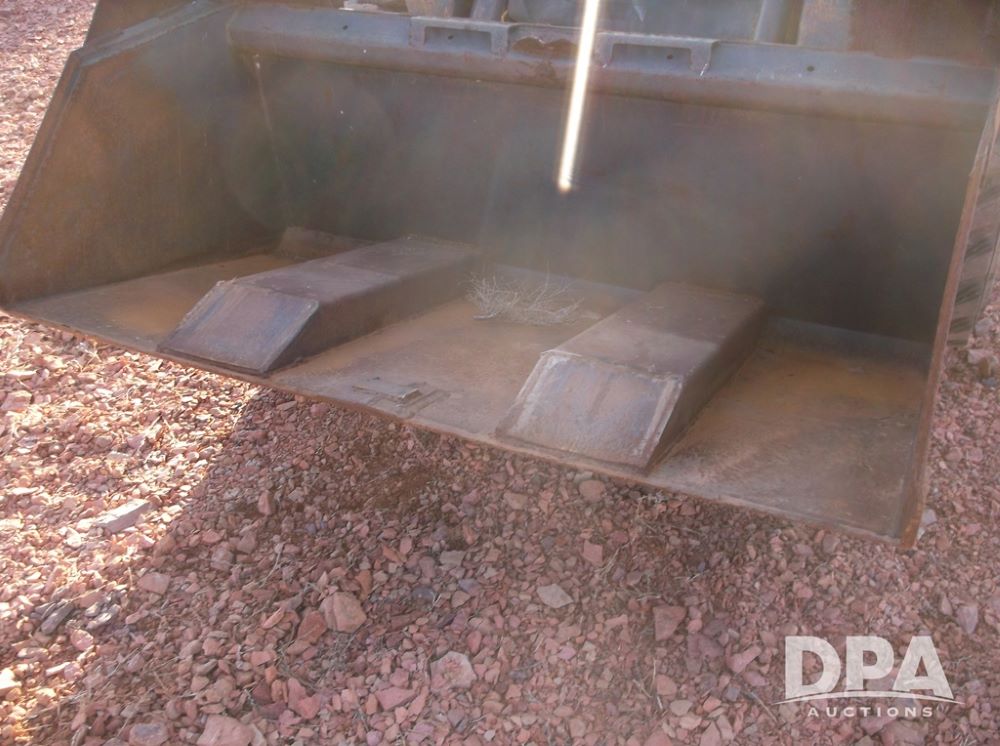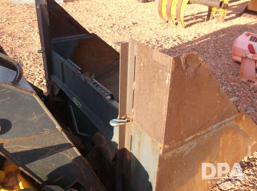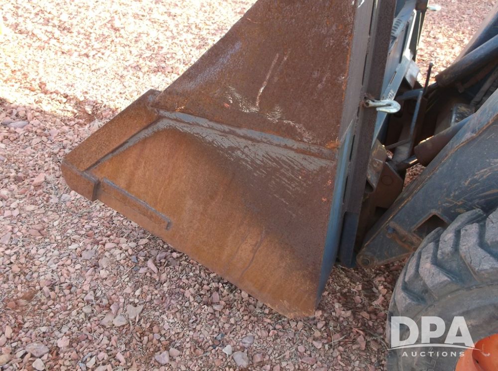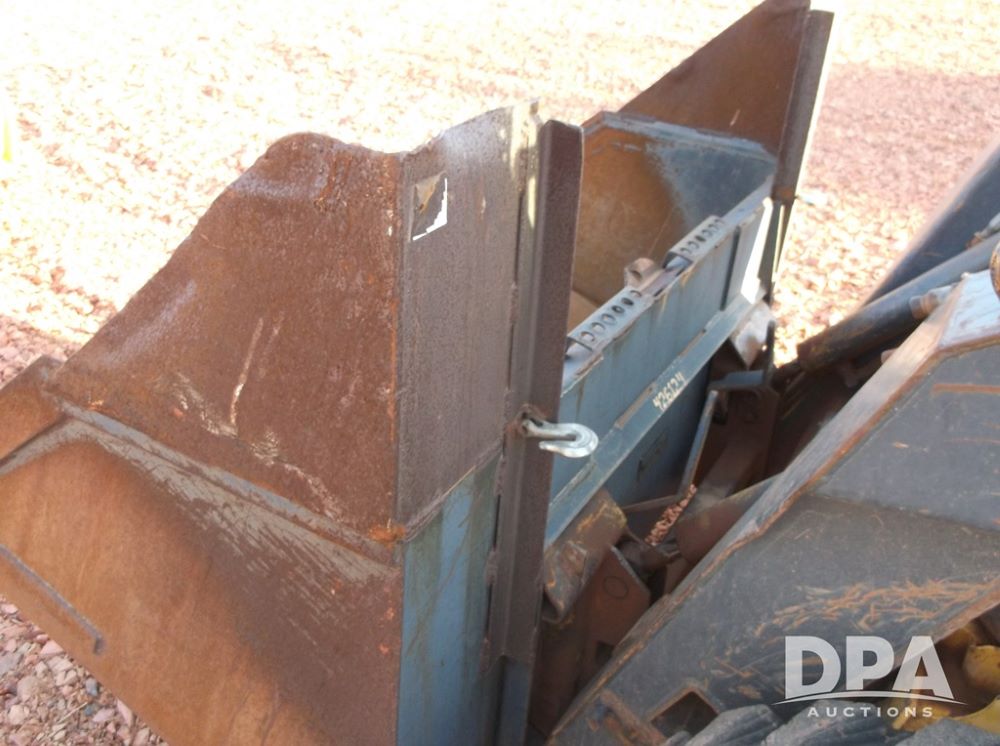 Skid Steer Bucket (LLD1495), approx. 5 foot wide, has been modified to accept wheel loader or telehandler forks.