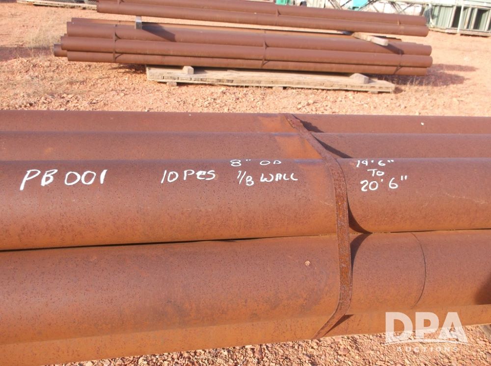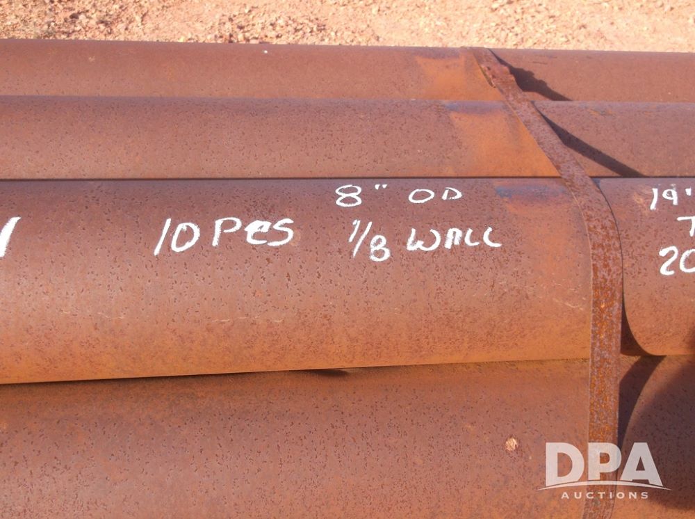10-Steel Pipe (LLD1496, Unit PB001), 10- steel pipe pieces, 8in OD, 1/8inch wall thickness, approx. length 19 foot - 21 foot.