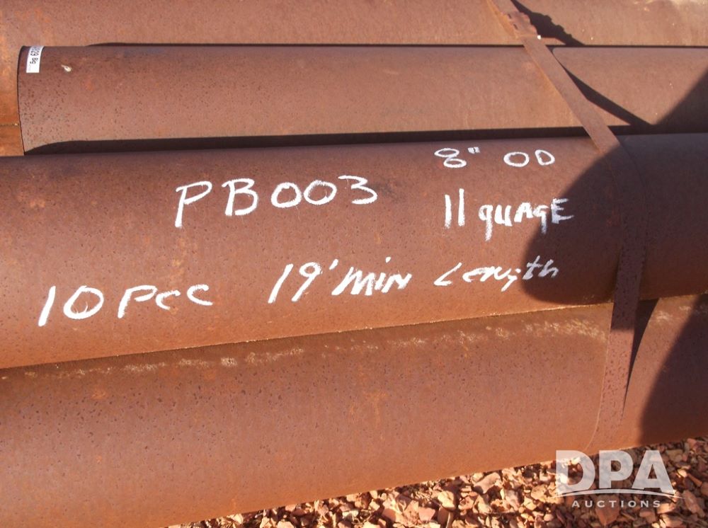 10-Steel Pipe (LLD1498, Unit PB003), 10 - pieces steel pipe, 8 inch OD, 1/8 inch wall thickness, approx. length is 19 foot - 21 foot.