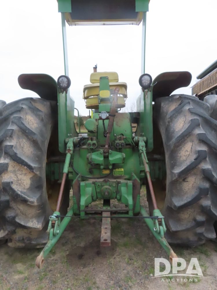 1967 John Deere 5020 Tractor (PD5340), John Deere diesel engine, synchro transmission, M&W Turbo kit, canopy, 2 remotes, PTO, quick hitch, rock box, 20.8X38 rear duals, 11.00-16 front BKT tires, shows 890 hours, 3,000 hours on engine rebuild.