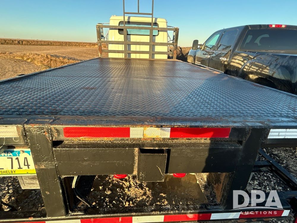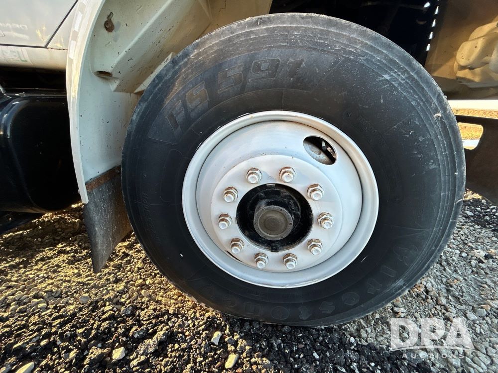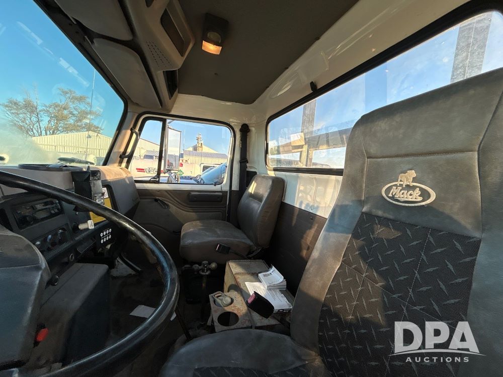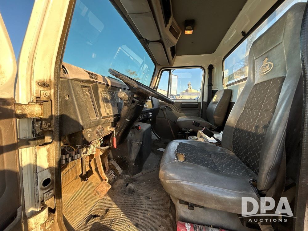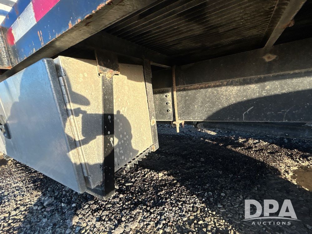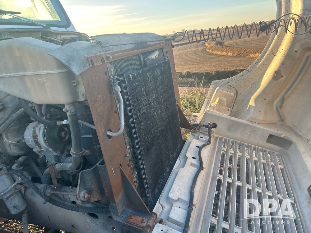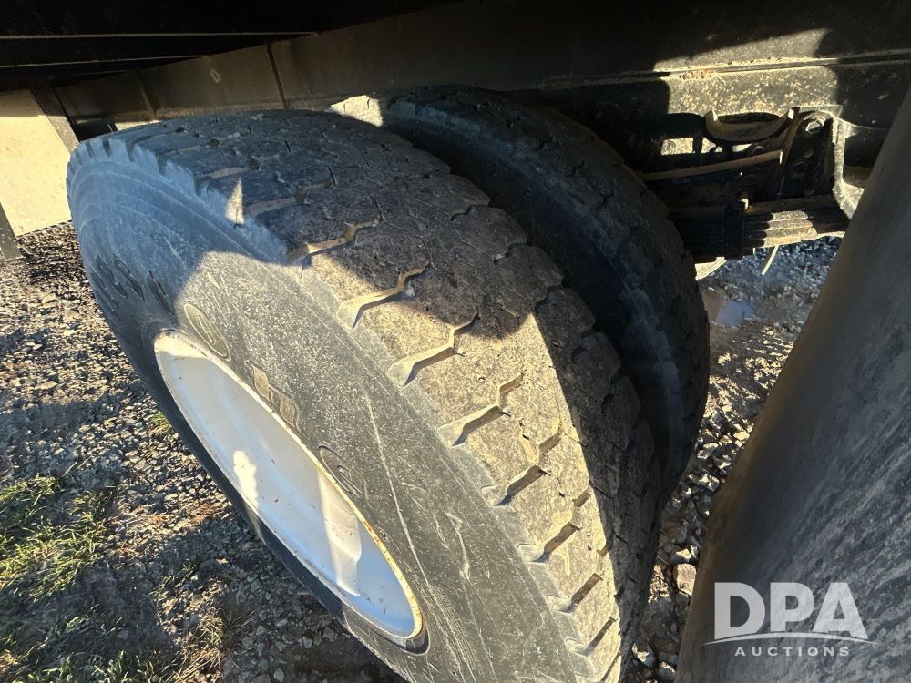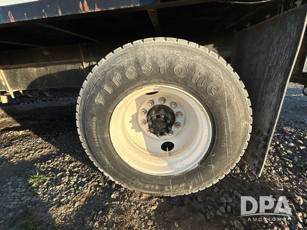 1996 International 4700 Flatbed (LS0506), DT466 diesel engine, 6-speed manual transmission, heat and air conditioning, manual windows, headache rack side compartment storage, 11r 22.5 front tires, 11r 22.5 rear dual tires, 417,727 miles.