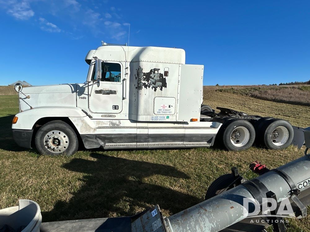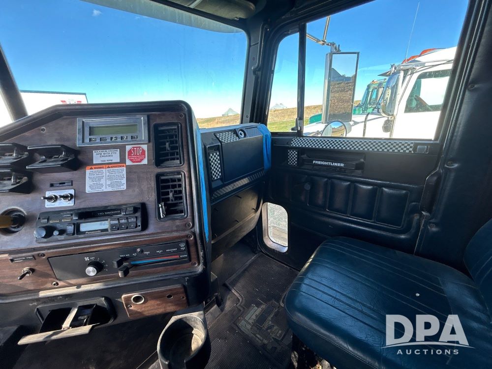 1996 Freightliner FLD 120 (LS0470), Cummins N14 diesel engine, Eaton 10-speed transmission, heat/ air conditioning, AM/FM radio, manual windows, air suspension, tandem axle, 11R 22.5 front tires, 295/75r 22.5 rear tires, cracks in fiberglass around both fenders, mileage unknown.