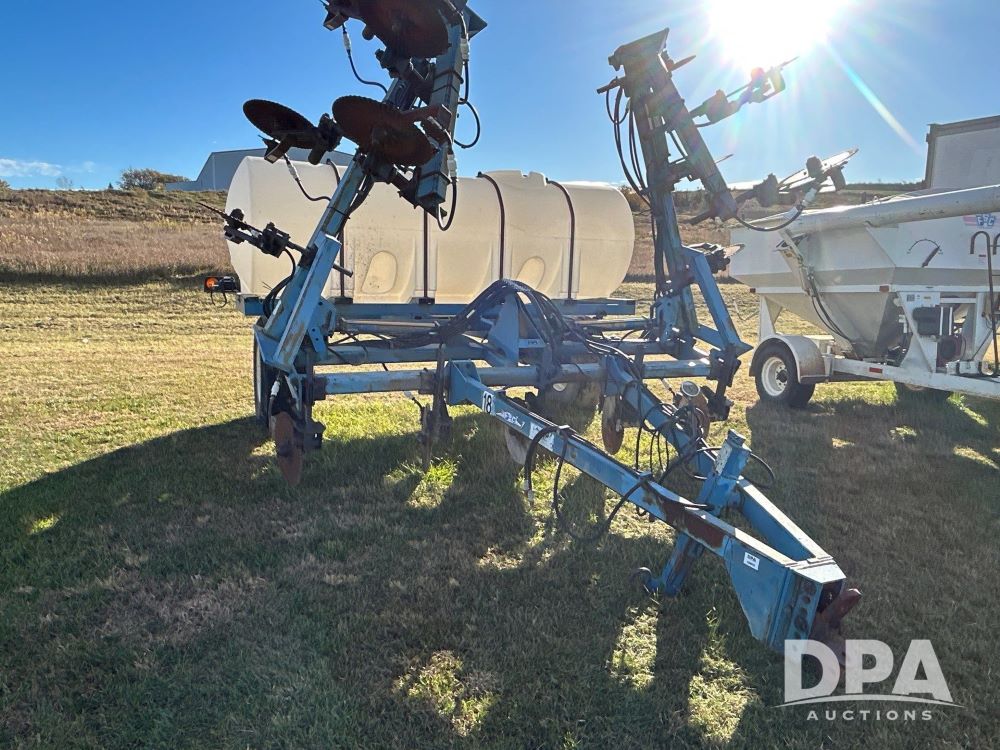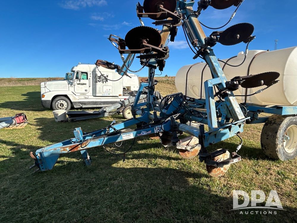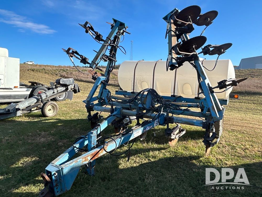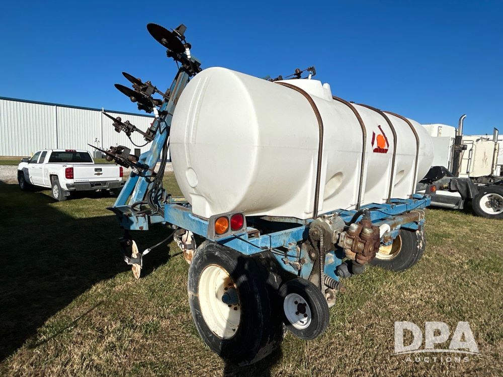 Ag Systems 15 Knife Liquid Inject Applicator (LS0473), 1200 gallon tank, spring coulters, ground driven pump, clevis hitch, manual jack, 385/65r22.5 tires.