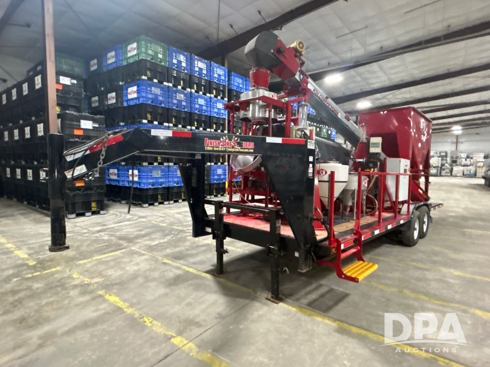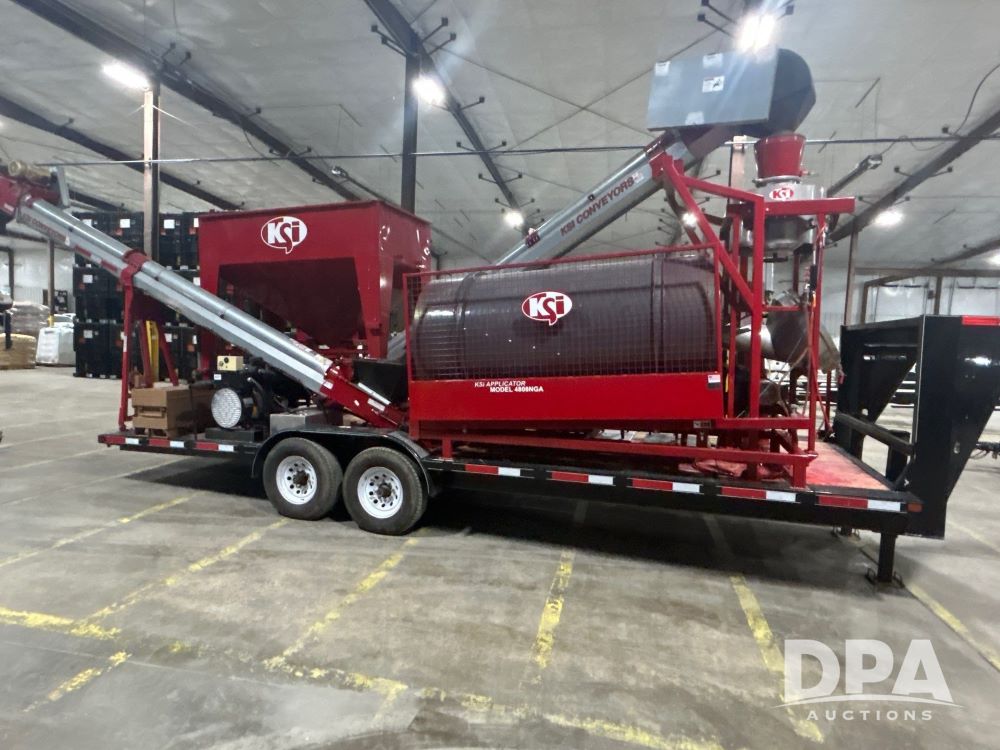 2015 Finish Line Trailer & KSI 4808NGA Mobile Seed Treater (LS0478), mobile treater mounted on a Finish Line tandem axle gooseneck trailer, Kubota diesel generator, 2 metered induction stands, 1 stainless cone with dual line squeeze pump, 1 poly cone with single line squeeze pump, plumbed for treatment keg recirculation ability, KSI model 120821 and model 120819 conveyors, ready to treat.