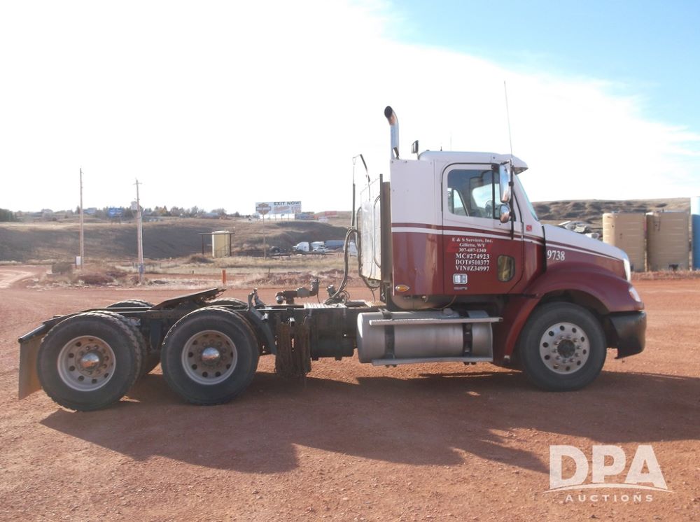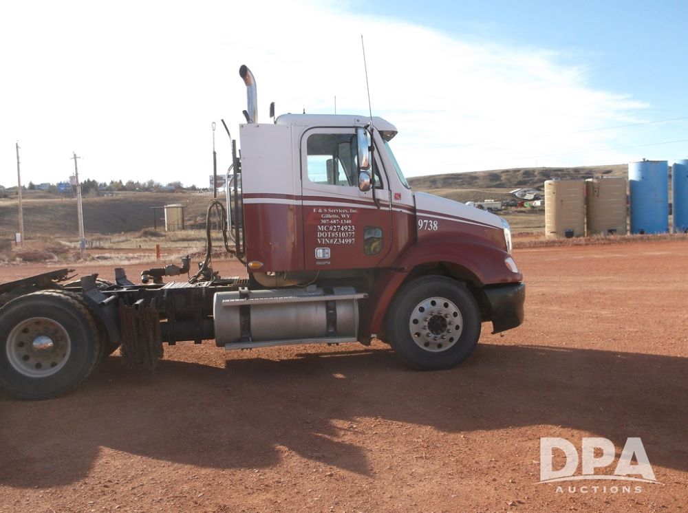 2007 Freightliner Columbia 112 (LLD1510), Mercedes MBE 4000 engine, 410 hp, Fuller 9 speed transmission, engine brake, PTO, 190 inch wheel base, 3.70 ratio, 6 x 4, air conditioning, steel frame, brakes 70%, 11622.5 recap tires, aluminum wheels outside, steel inside, stationary fifth wheel, blower not included (will be removed before the auction), shows 900,000 miles.