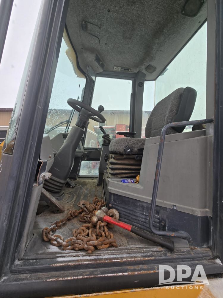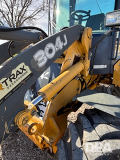 John Deere 304J Wheel Loader (NJP432), John Deere 5030T diesel engine, hydraulic transmission, cab, heat/ac, shows 27,411 hours.