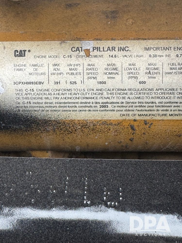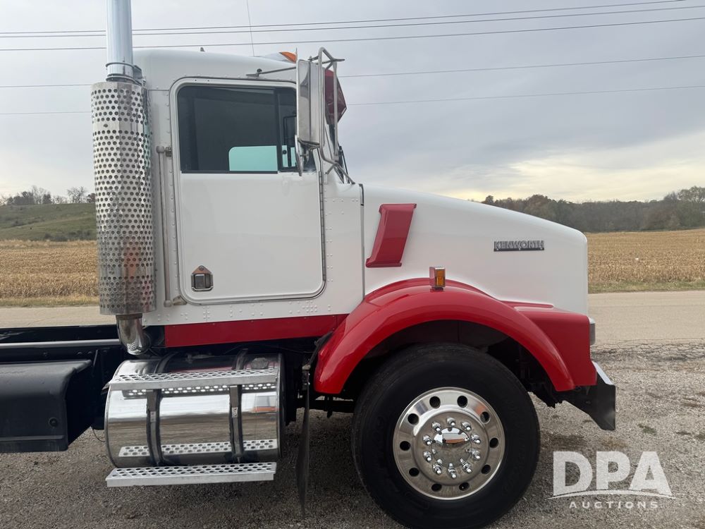 2003 Kenworth T800 Cab/Chassis (NP6283), Cat C-15 single turbo diesel engine, 10 speed manual transmission, heat, air conditioning, Am/Fm radio, tandem axle, Chalmers suspension, 17 foot frame behind cab, 22.5 tires, 14,600 front axle, 46,000 rear axle, shows 687,104 miles.