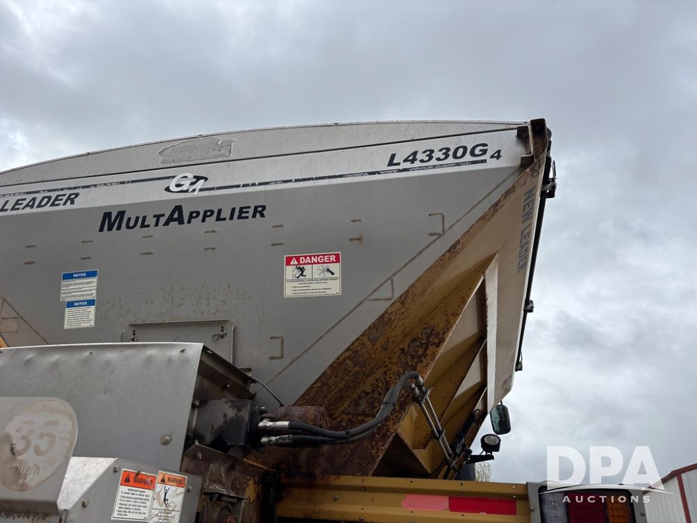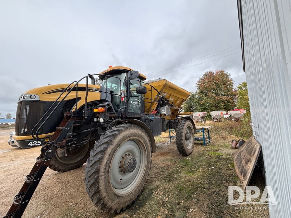 2015 RoGator RG1300B Dry Machine (DR12564 Unit 425), diesel engine, hydrostatic drive, New Leader L4330 G4 stainless steel hydraulic spinner box, Multiplier insert, electric roll tarp, Ag Leader controller, L160 swathing light bar, cab heat/air conditioning, AM/FM CD radio, Michelin 380/90R46 row crop tires, shows 6569 hours.