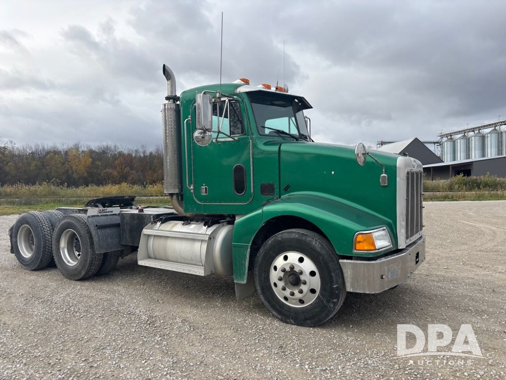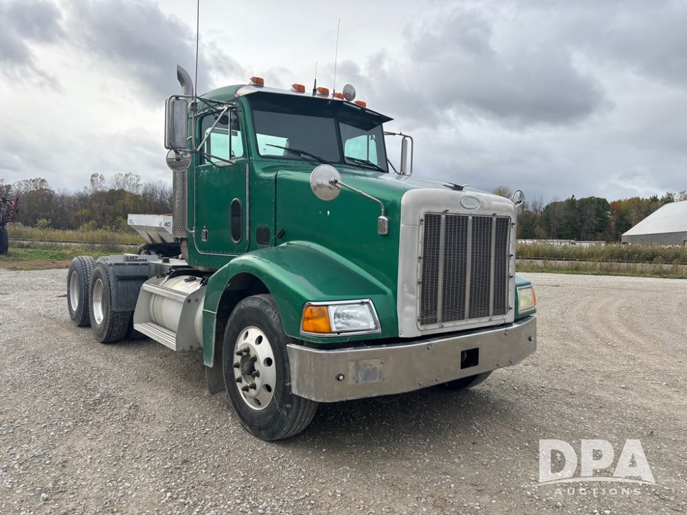 1996 Peterbilt 385 Truck (DR12583 Unit 206), Cat diesel engine, 10 speed transmission, tandem axle full screw, 188'' WB, air ride suspension, factory day cab, hydraulic wet kit, engine brake,5th wheel plate, Michelin 22.5 tires, all aluminum wheels, odometer reads 1,005,076 miles.