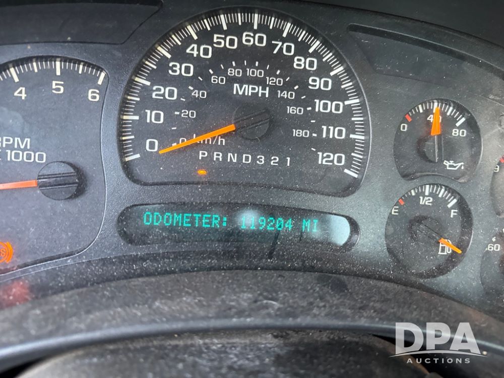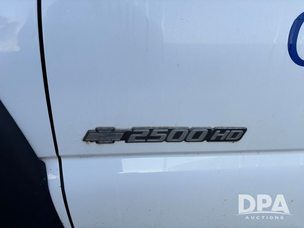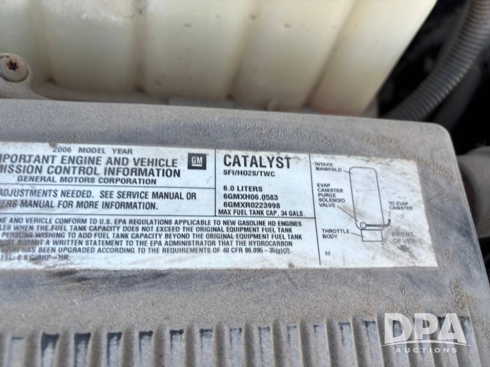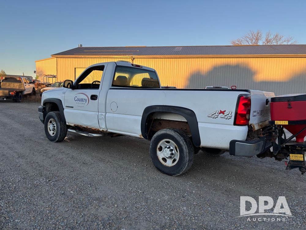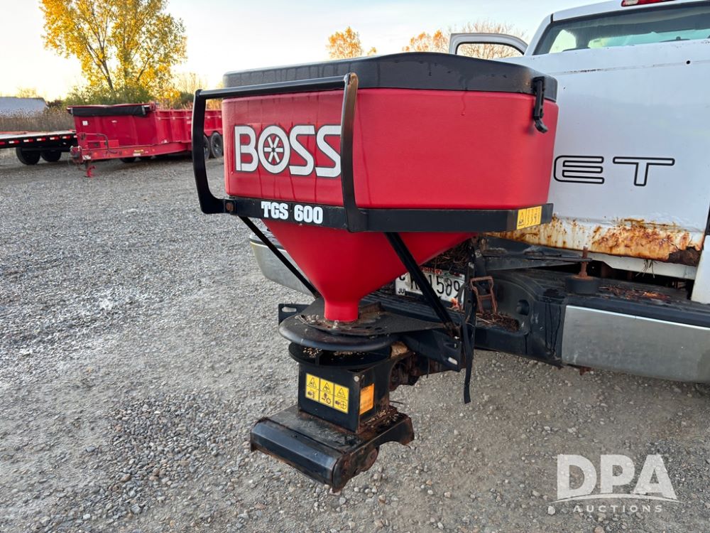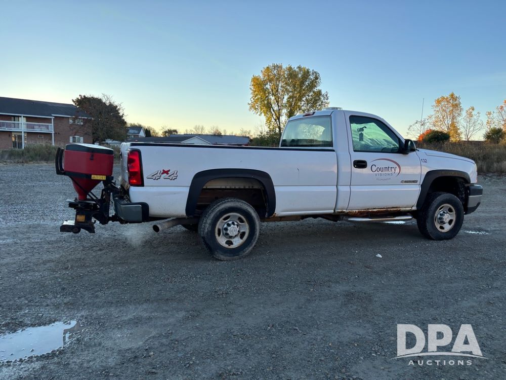 2006 Chevy 2500HD Pickup (DR12587 Unit B132), 6.0 liter gas engine, automatic transmission, 4X4, regular cab long box, Boss TGS rear mounted salt spreader w/cab control, chrome nerf bars, front plow bracket, spray bed liner, 245/75R16 tires, odometer reads 119,204 miles.