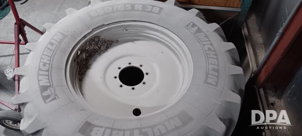 Flotation Tires (DR12666), set of (4) Michelin 650/65R38 float tires mounted on 8 bolt wheels, 11'' on centers, 8 5/5'' center hole.