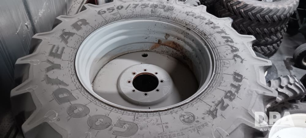 Flotation Tires (DR12667), set of (4) Goodyear 650/75R38 float tires mounted on 8 bolt wheels, 11'' on centers, 8 5/5'' center hole.
