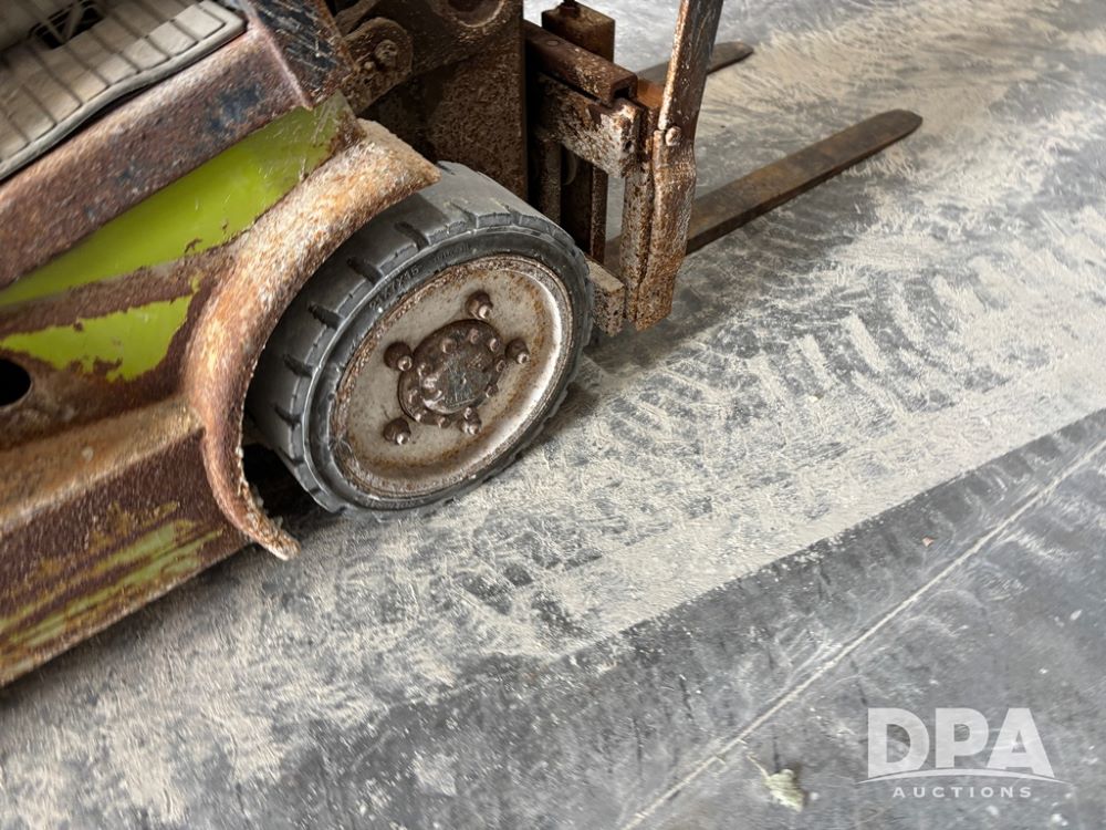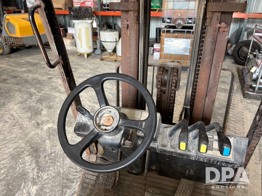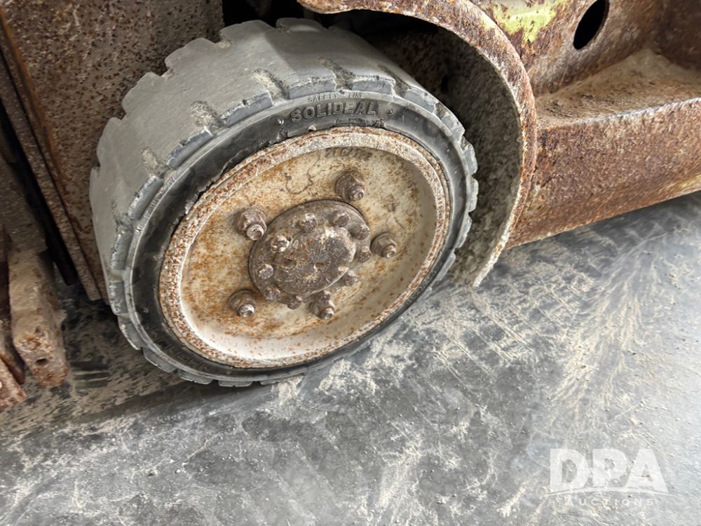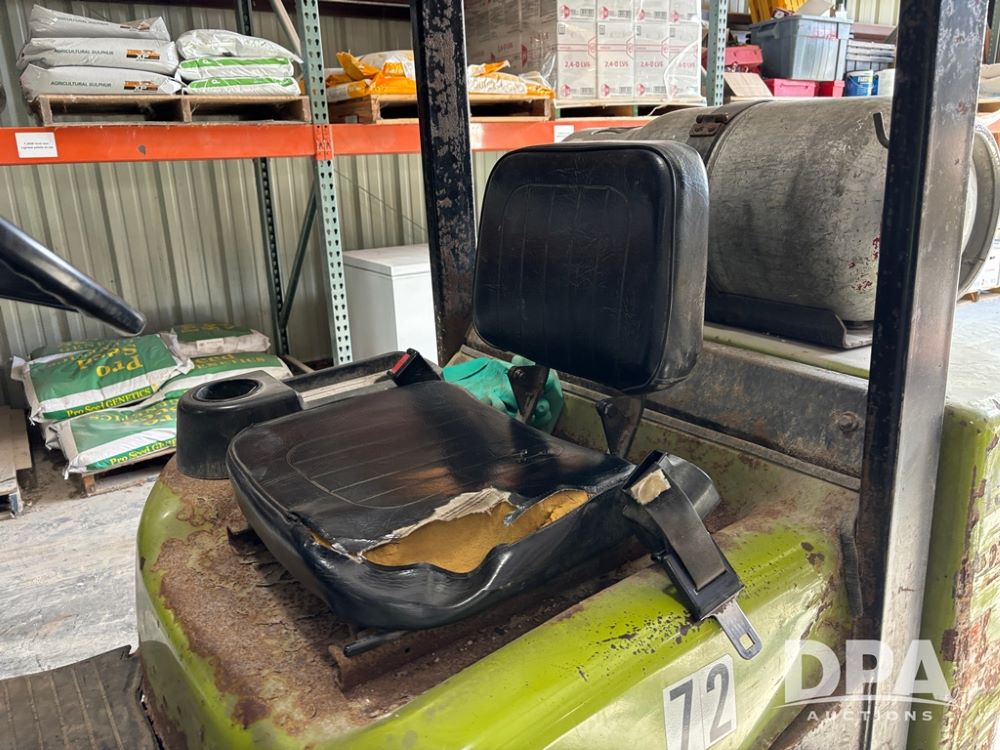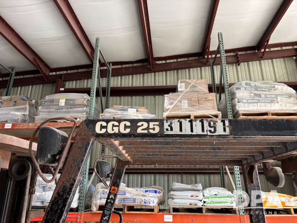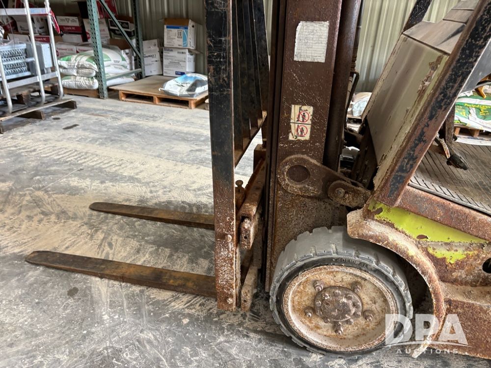 Clark Forklift (DR12604 Unit 72), model CGC25, LP gas engine, shuttle shift drive, OROPS, 3 stage mast, 4600lb capacity, hydraulic side shift, solid tires, shows 5,737 hours.