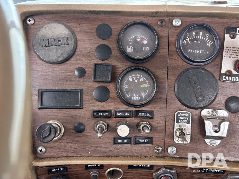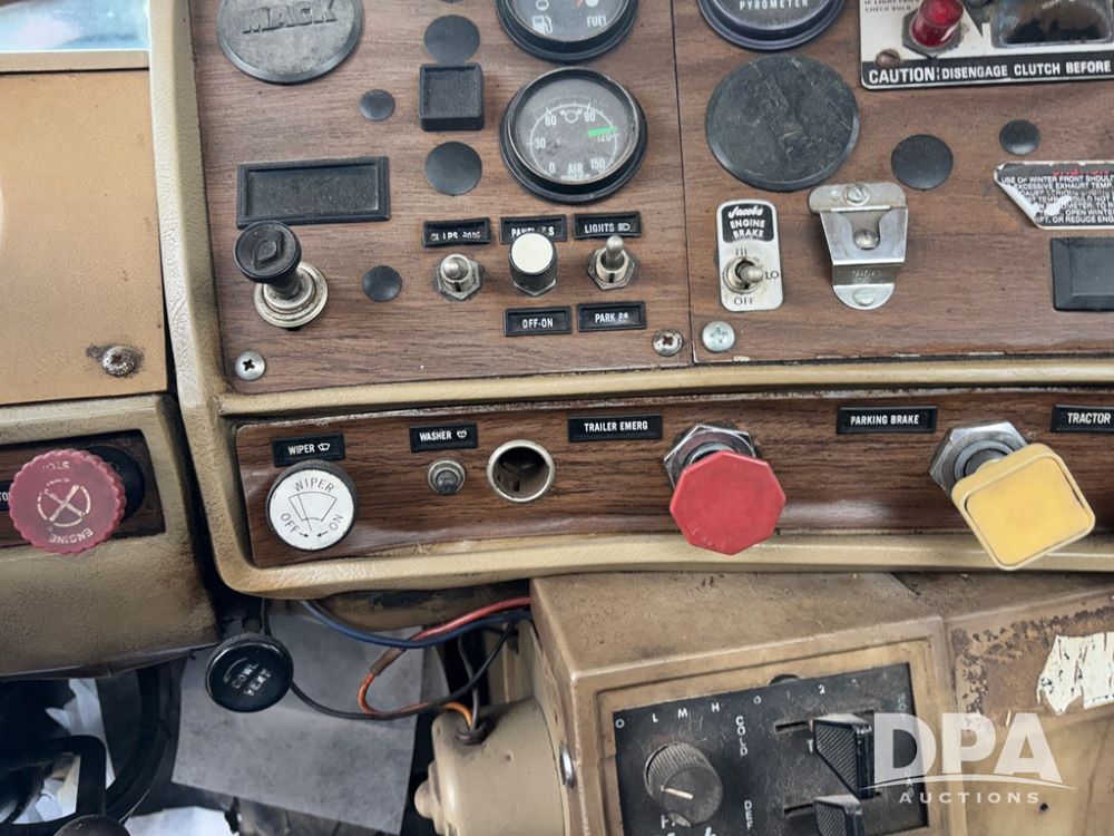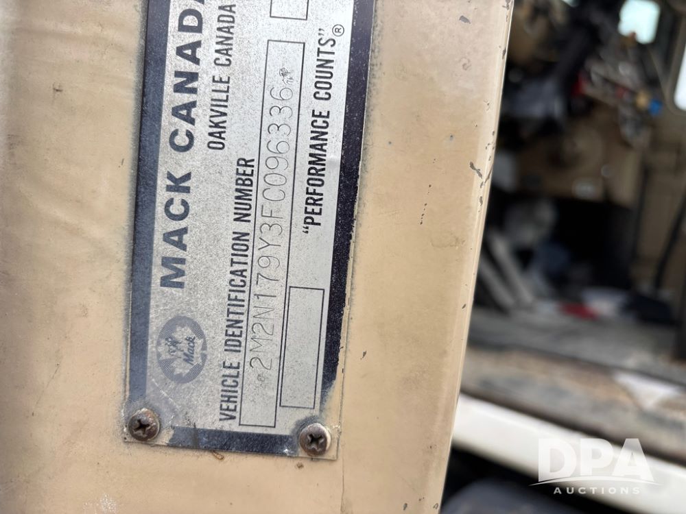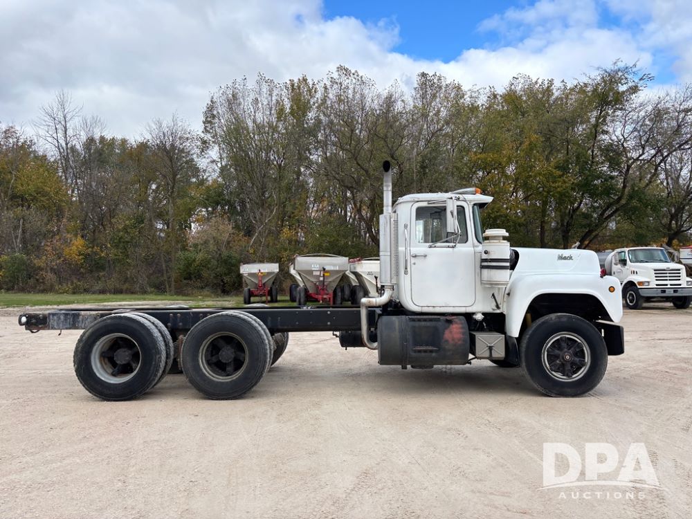 1985 Mack R686ST Truck (DR12624 Unit 72), Mack diesel engine, manual transmission, tandem axle full screw, Mack rears, 191'' WB, engine brake, 22.5 tires.