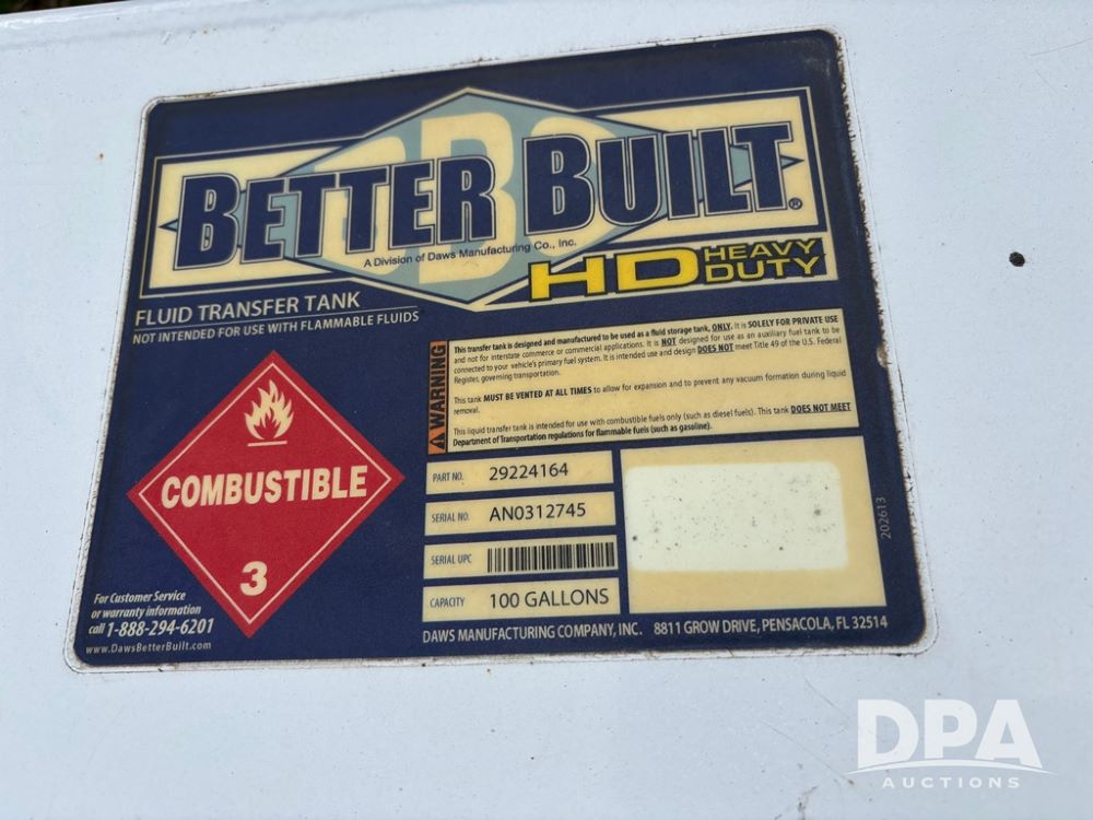 Fuel Tank (DR12627), 150 gallon steel fuel tank, has been repaired around fill.