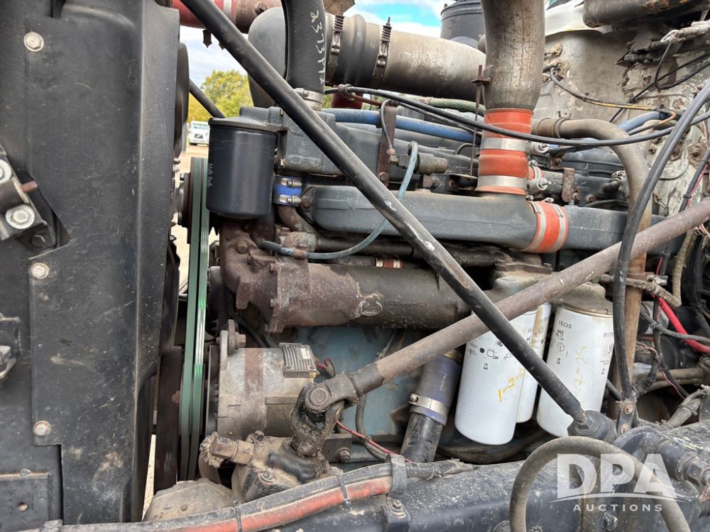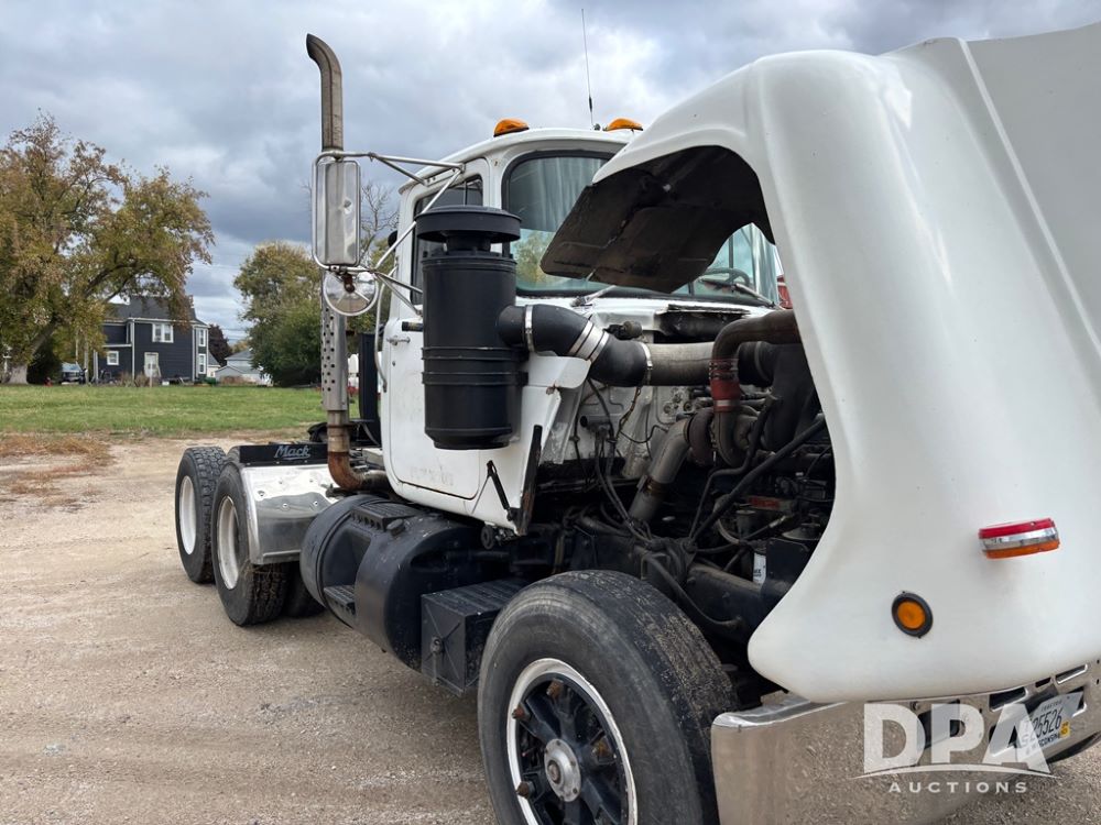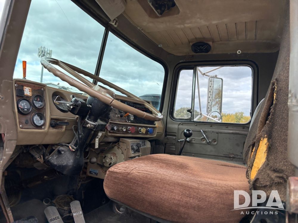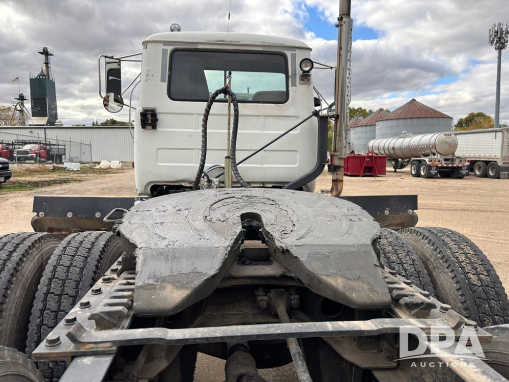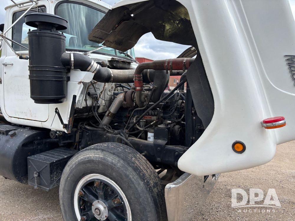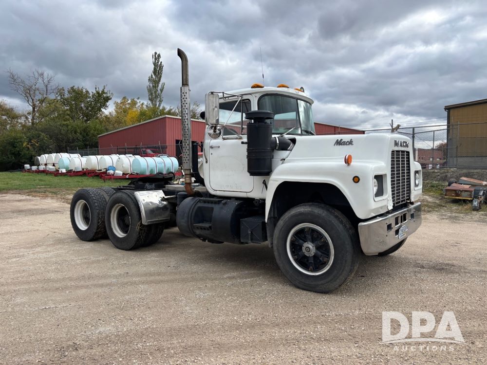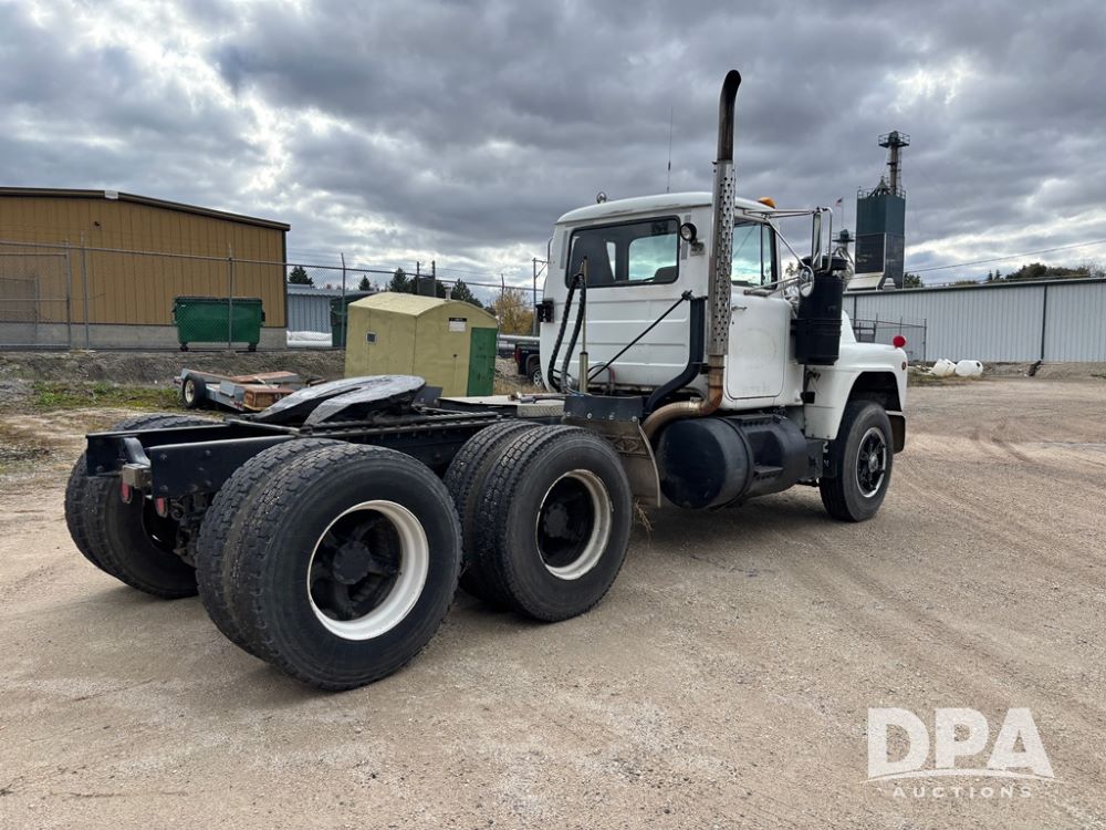 1984 Mack R686ST Truck (DR12629 Unit 105), Mack diesel engine, manual transmission, day cab, tandem axle full screw, 5th wheel plate, Mack rears, 22.5 tires, Dayton wheels.
