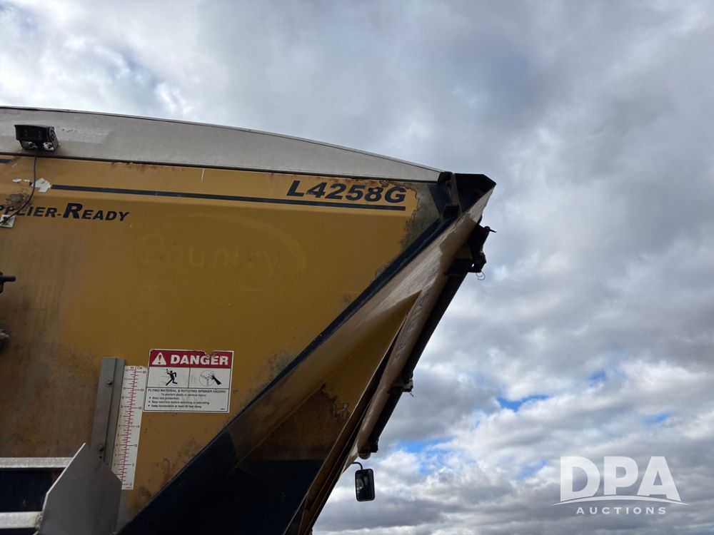 2014 RoGator 1300 Dry Machine (DR12630 Unit 3006), diesel engine, hydrostatic drive, New Leader L4258 G4 stainless steel dry spinner box, (has issues), belt/chain, electric roll tarp, Raven Viper IV controller, cab cam, cab heat/air conditioning, AM/FM CD radio, 380/90R46 row crop tires are near new, shows 5,226 hours.