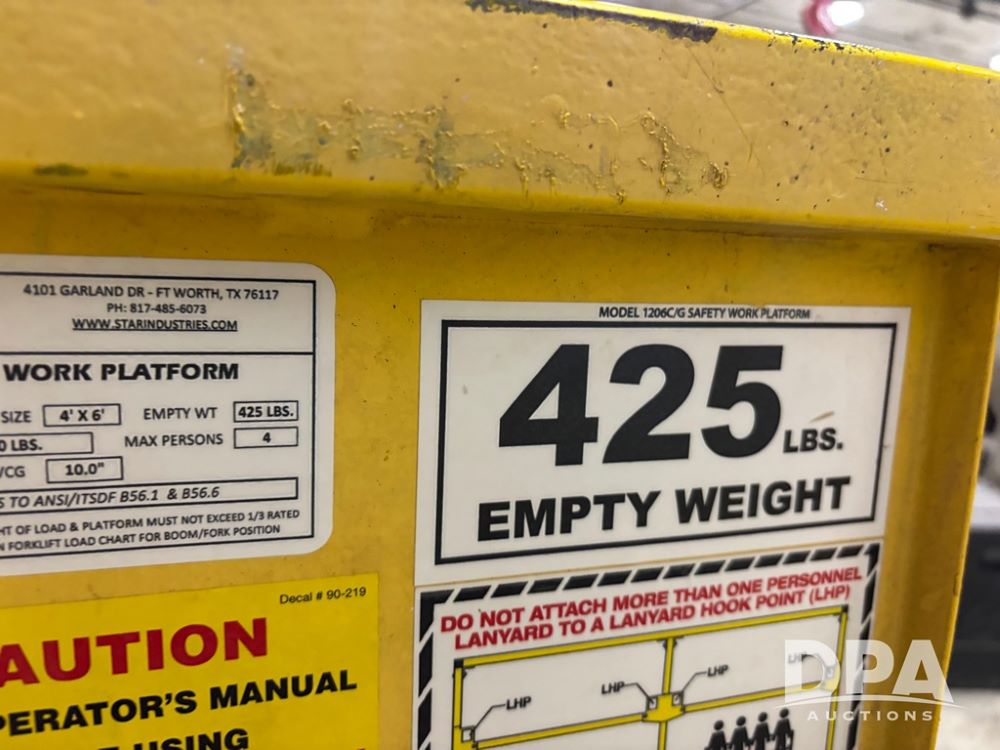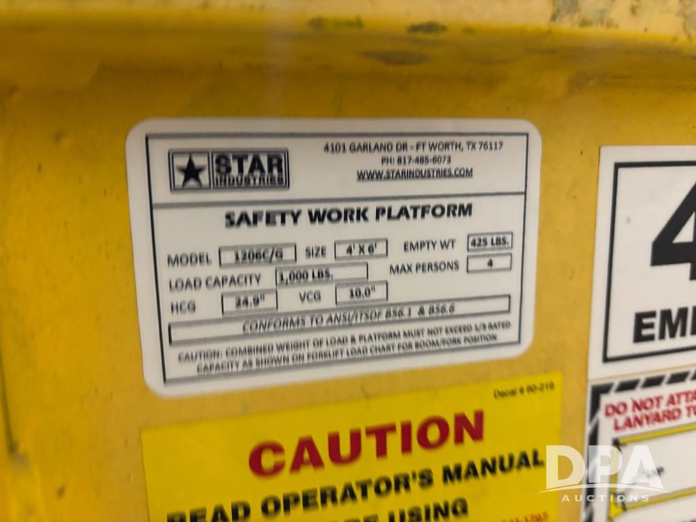 Star Man Basket (DR12633), model 1206C, 4'X6' steel man basket, has lift brackets.