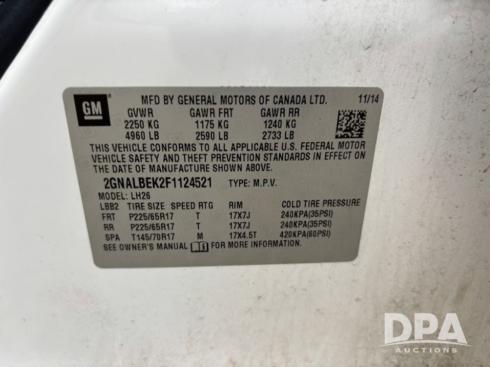 2015 Chevy Equinox (DR12635 Unit 1044), 2.4 liter gas engine, automatic transmission, air conditioning, power windows, locks & mirrors, 225/65R17 tires are near new, odometer reads 122,007 miles.