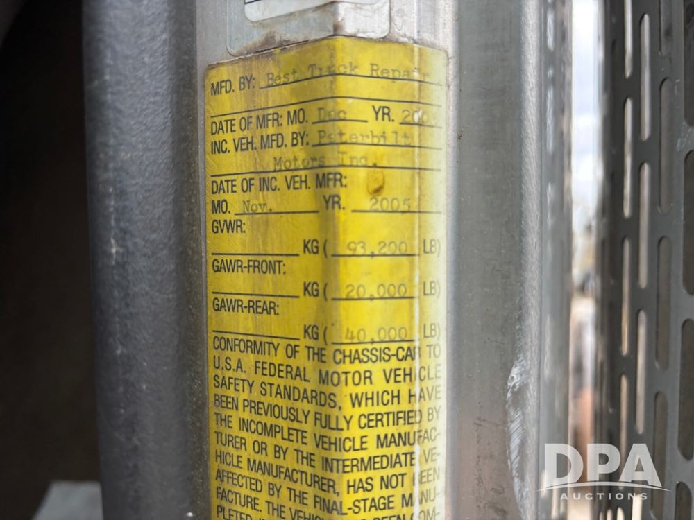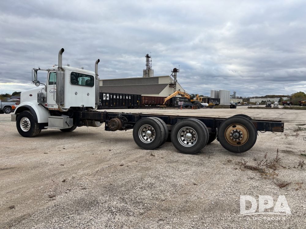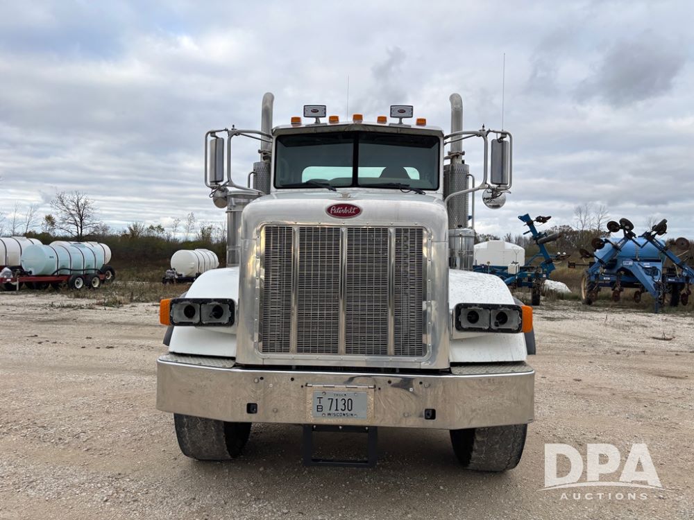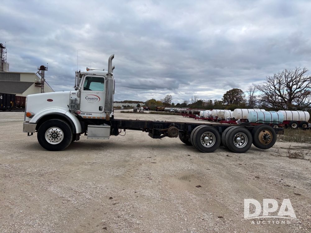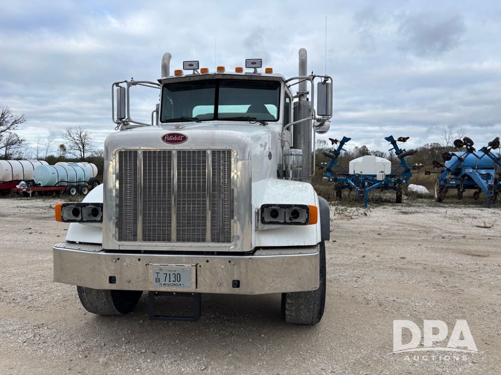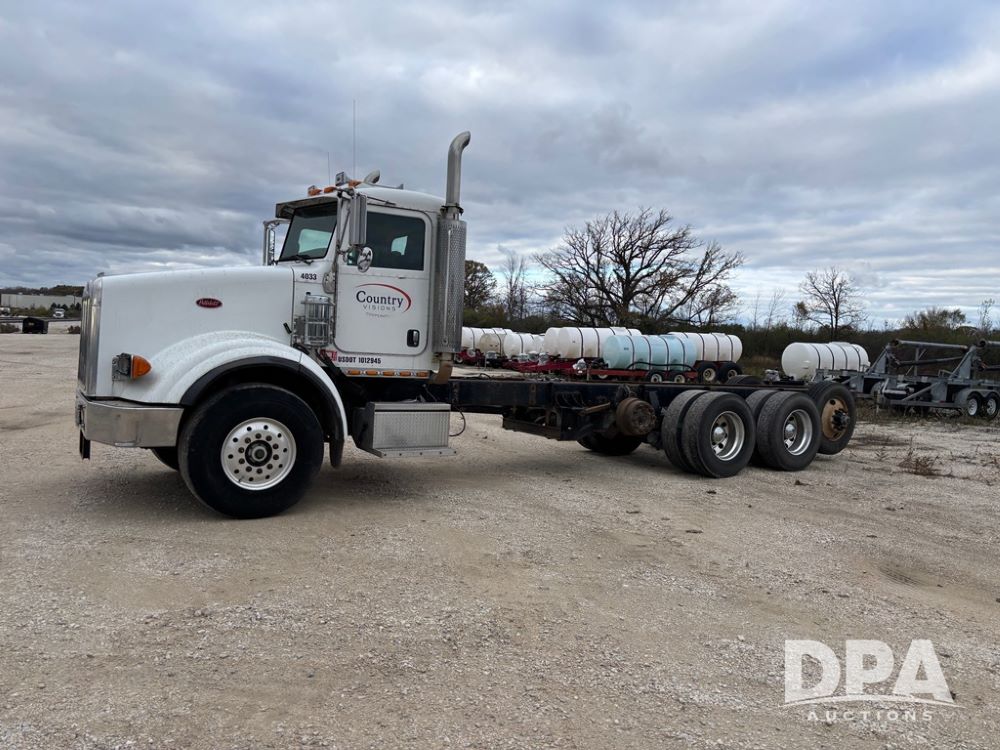 2006 Peterbilt 378 Truck (DR12637 Unit 4033), Cat diesel engine, 18 speed transmission, tandem axle full screw, air lift tag and pusher axles, 245'' WB, 20.00lb heavy front axle, steering slave cylinder, double frame, locking rears, engine brake, air dump, cruise control, dual chrome stacks, power windows, 22.5 tires, all aluminum wheels, odometer reads 784,948 miles.