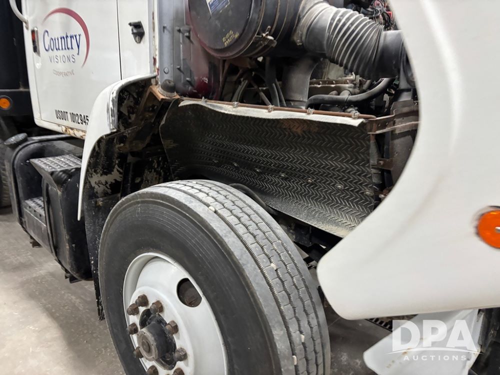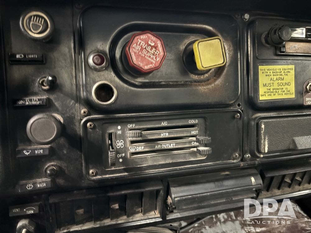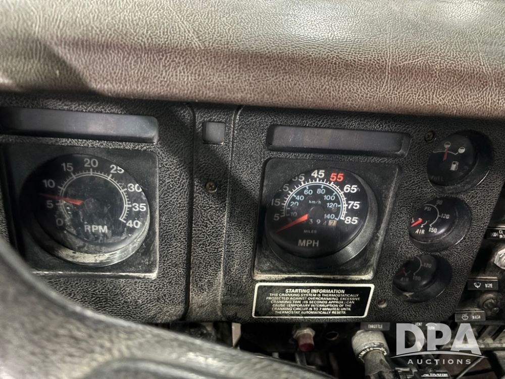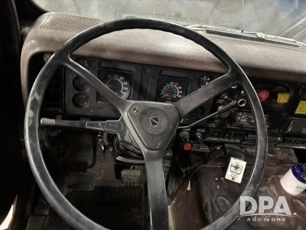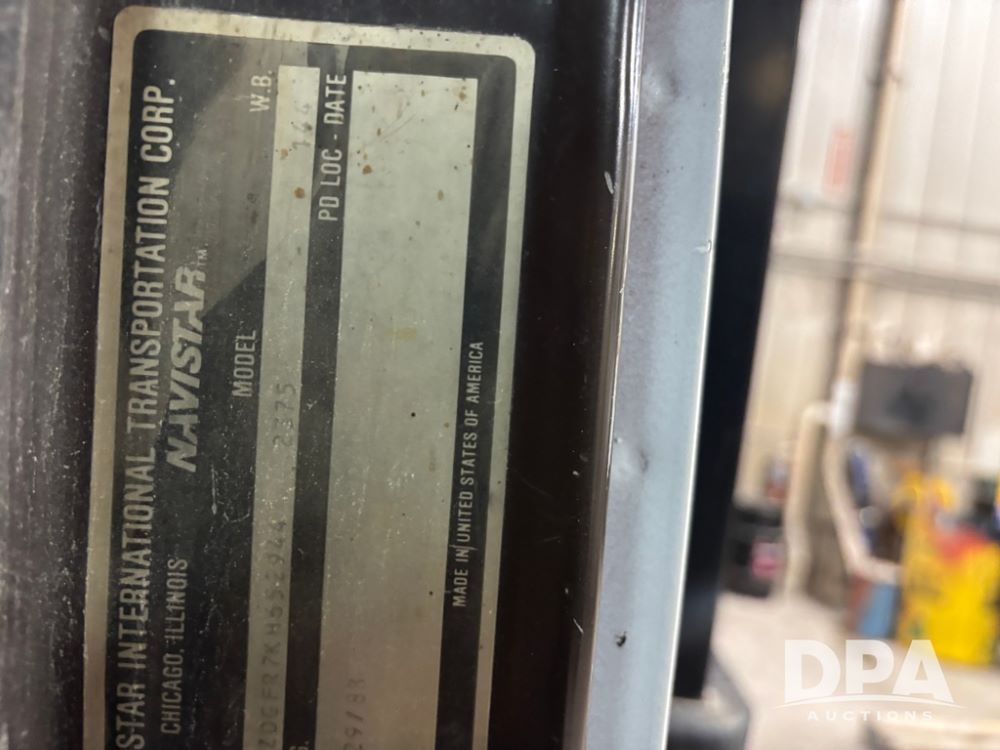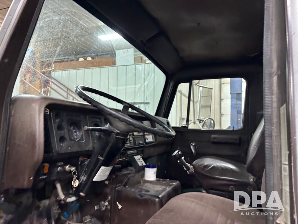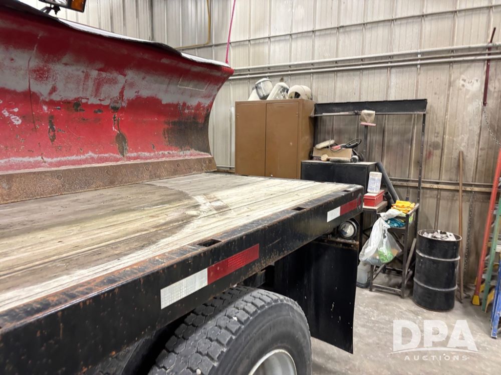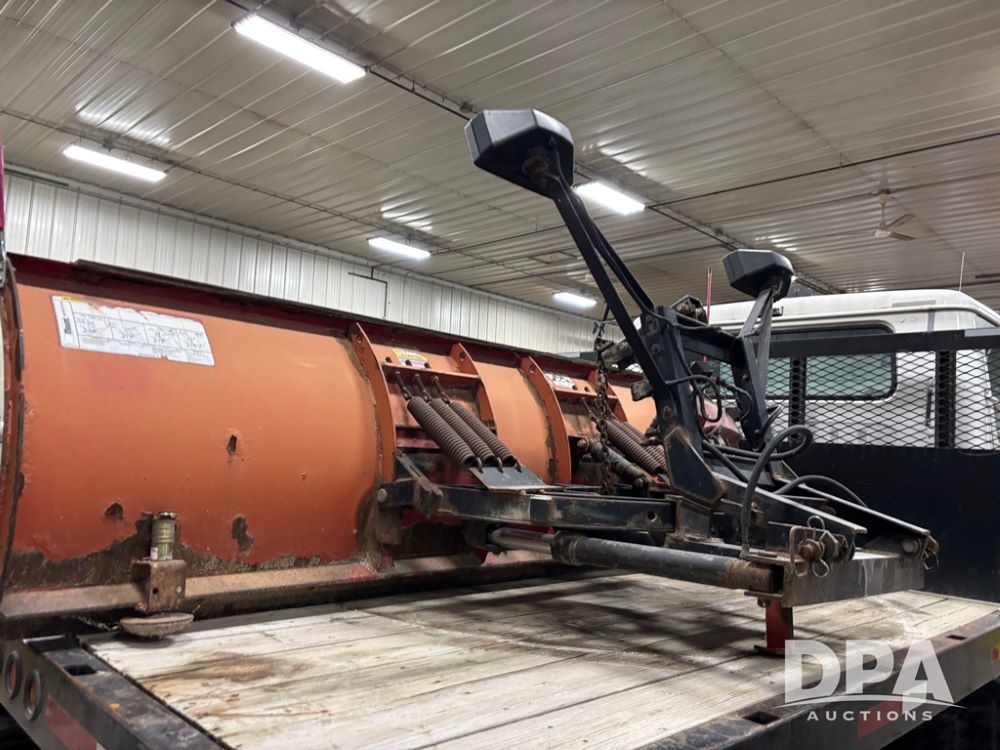 1989 International 2375 Plow Truck (DR12639 Unit 215), Cummins diesel engine, manual transmission, single axle, air brakes, 10' wood deck flatbed, Western 10' front mount hydraulic snow plow, cab controls, rear ag bumper, rear trailer hook ups, 22..5 tires, odometer reads 595,394 miles.