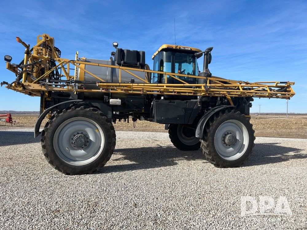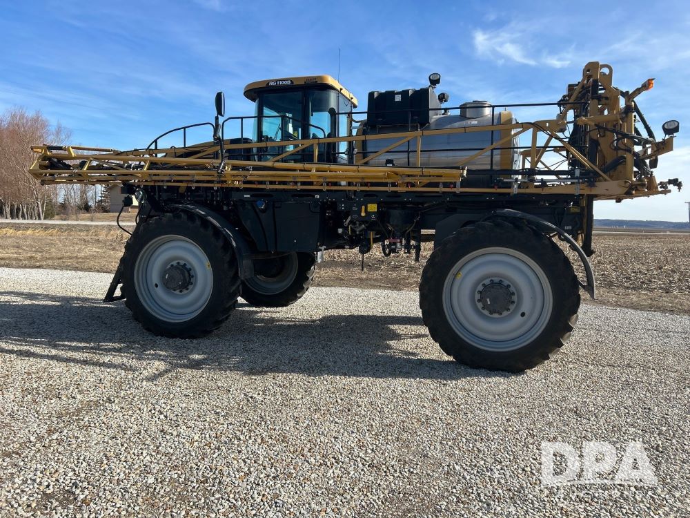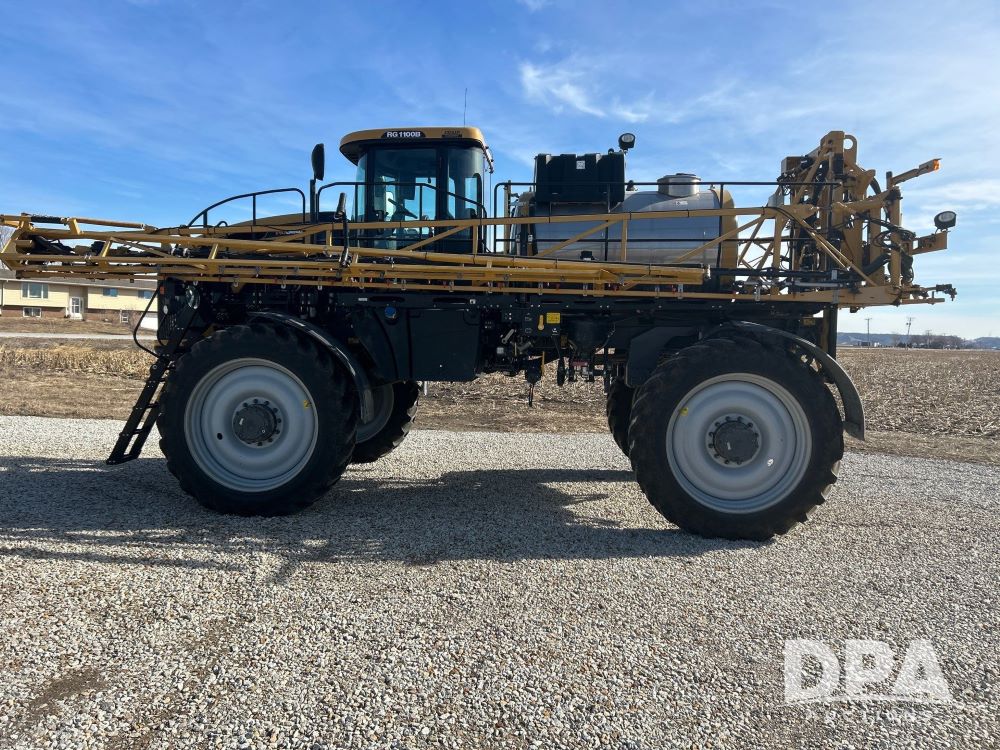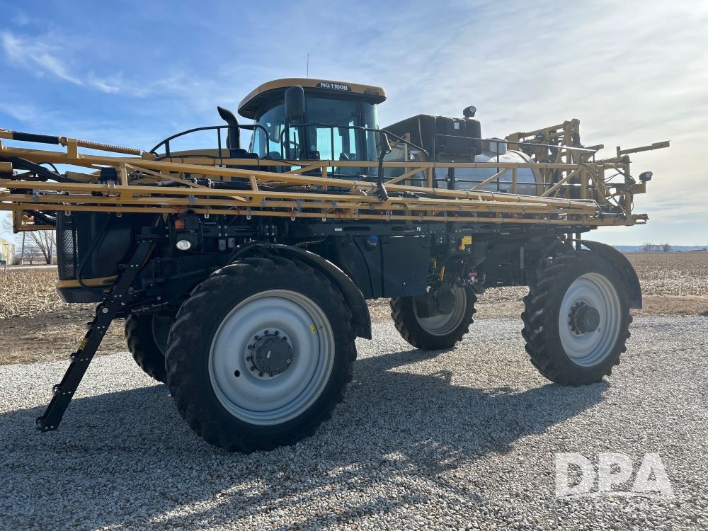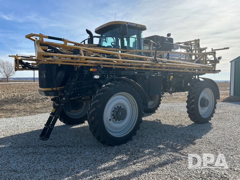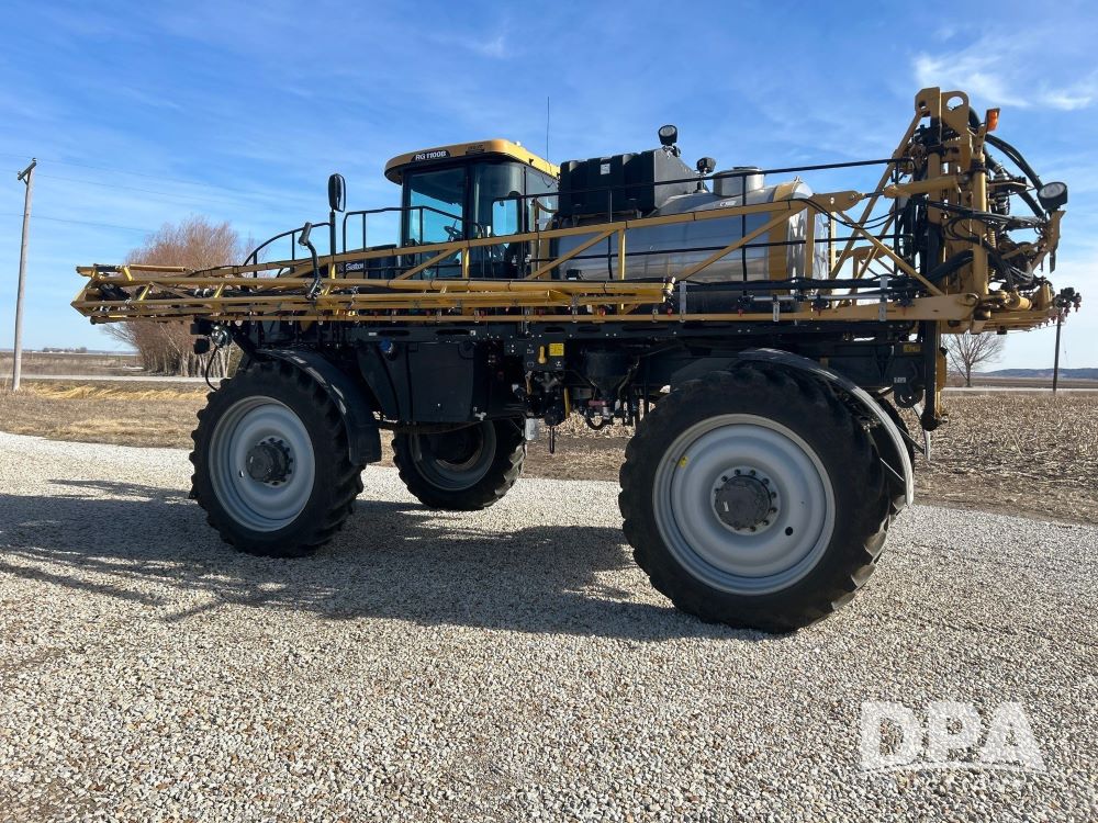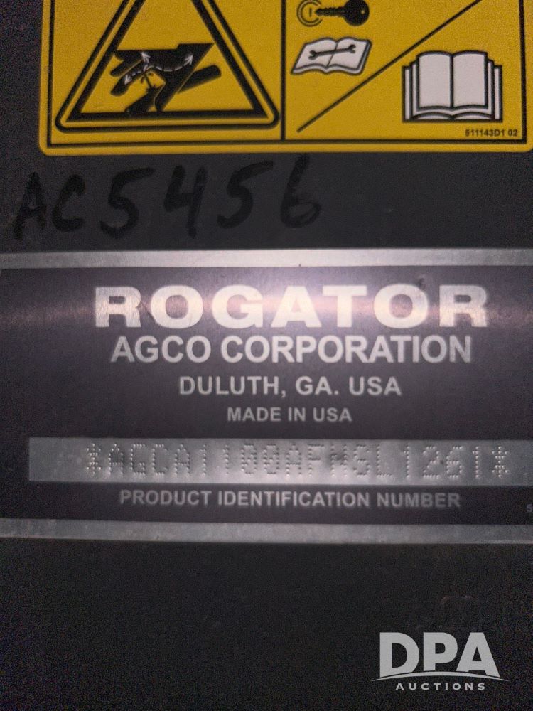 2016 Rogator RG100B Self-Propelled Sprayer (LS0375), diesel engine, hydrostatic transmission, heat/AC, Am/Fm radio, poly rinse tank, 1,100 gallon stainless steel tank poly injection system, poly inductor, front fill, 100 foot booms, 5 way nozzles, raven viper pro monitor, leather seats, goodyear VF 380/90R46 row crop tires, 650/65R38 float tires, float tires have 1 season on them. 1,856 hours, farmer owned.