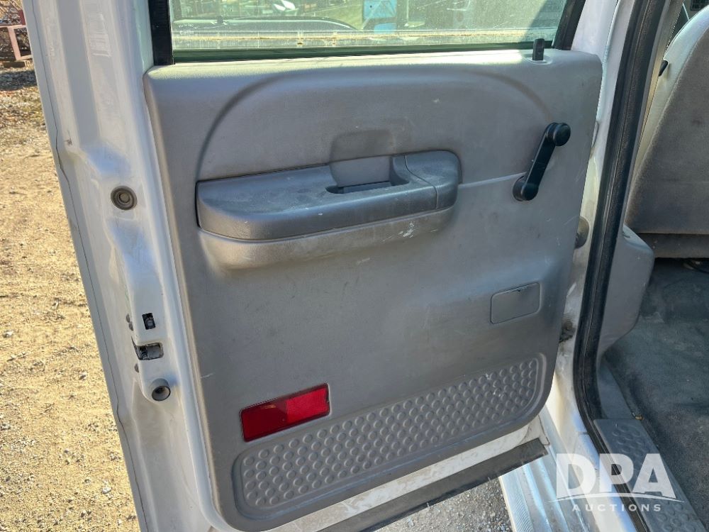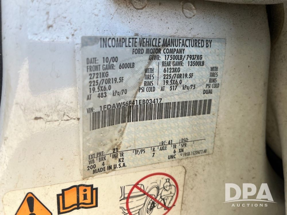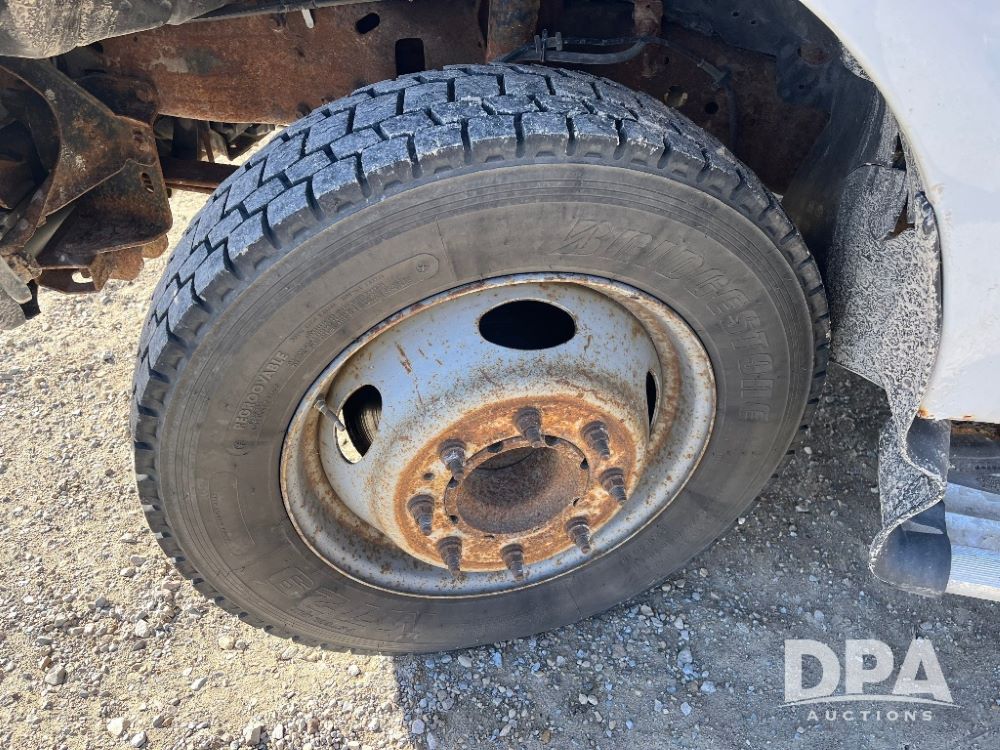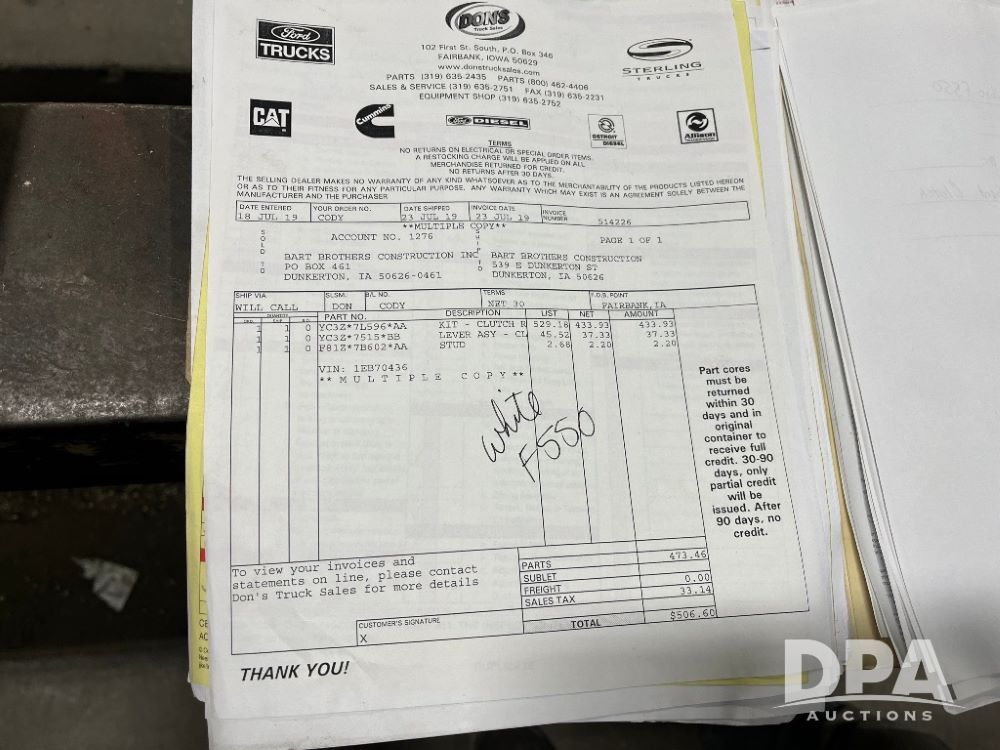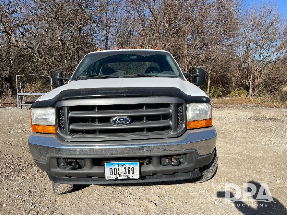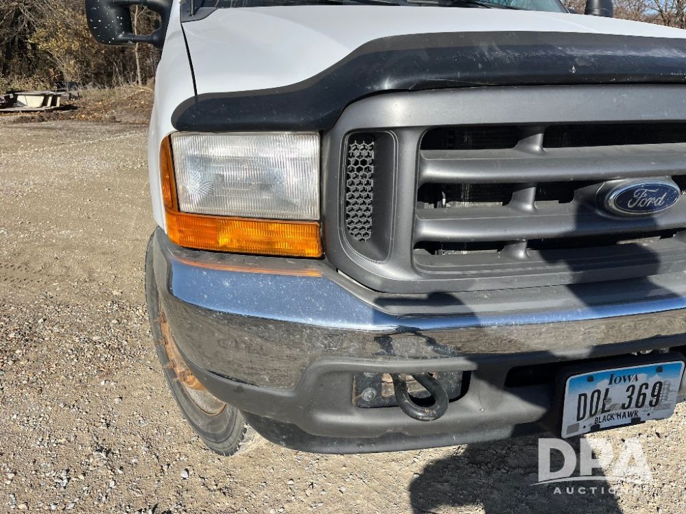 2001 Ford F-550 XL Super Duty Flatbed Truck (JN3393), 4 door, Power Stroke V8 diesel engine, manual transmission, heat, Am/Fm radio, cruise control, approx. 10' wood flatbed, wood stakebed sides, running boards, dually, 225/70R19.5 tires, shows 230,266 miles.