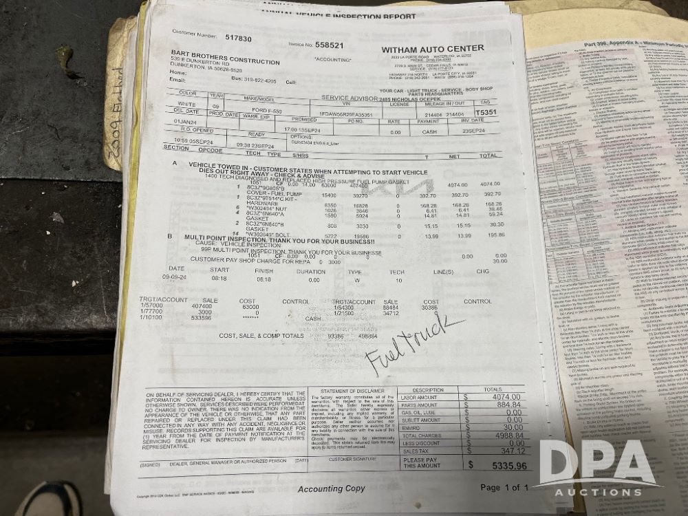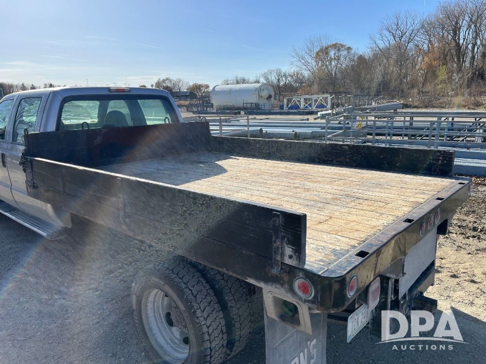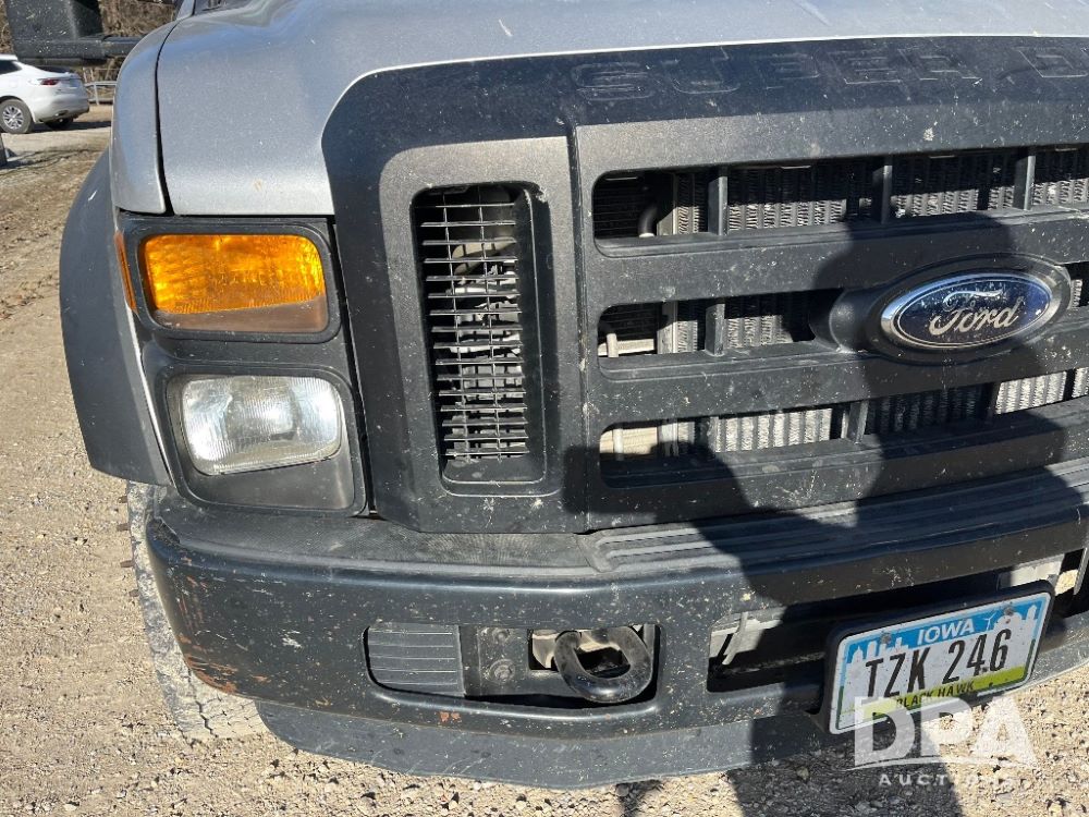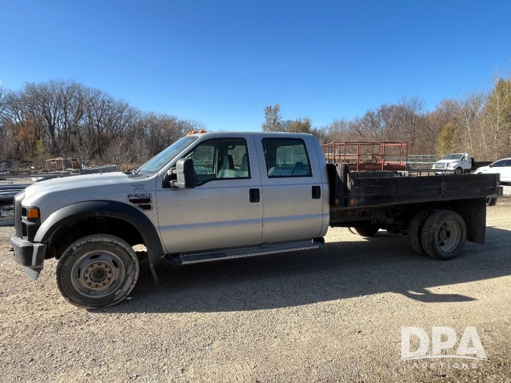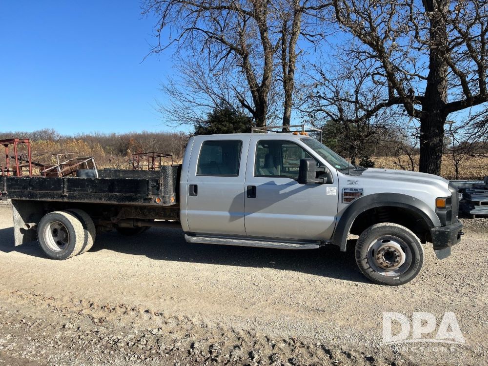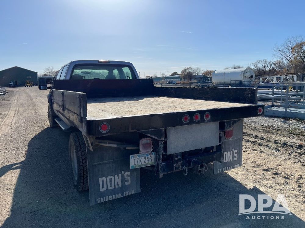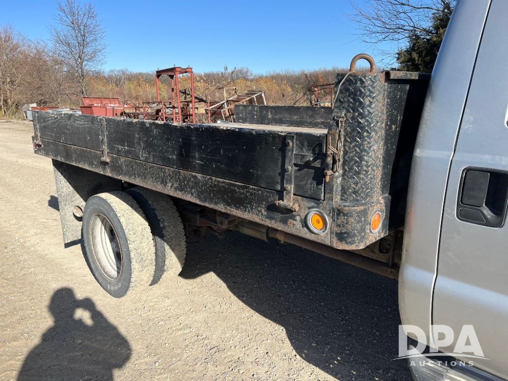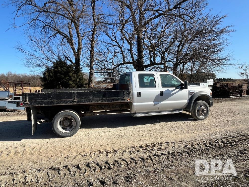 2009 Ford F-550 XL Super Duty Flatbed Truck (JN3394), 4 door, Power Stroke V8 turbo diesel engine, automatic transmission, heat, Am/Fm radio, approx. 10' wood flatbed, wood stakebed sides, dually, running boards, 225/70R19.5 tires, shows 220,182 miles.
