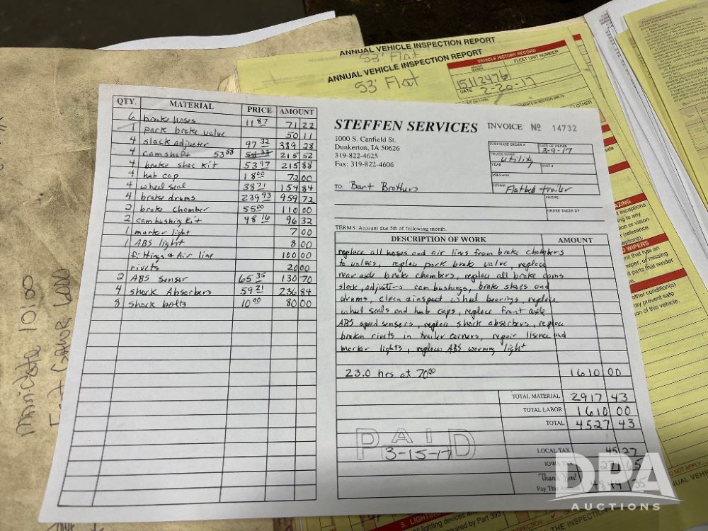 1999 Utility Flatbed Trailers (JN3395, Unit 173), Utility Model ES2CHA - 53' flatbed trailer, spread axle, flotation tires, landing gear, 295/75R22.5 tires, GVWR 80,000 pounds.