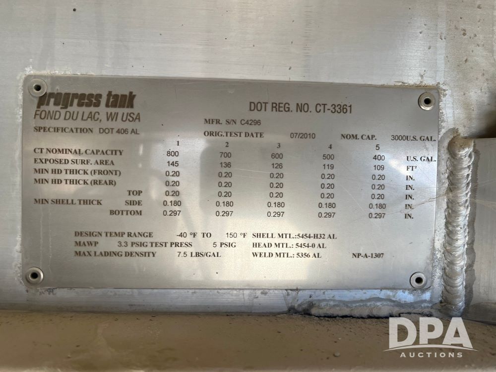 2010 IHC WorkStar Petroleum Truck (JN3389, Unit 487), Maxxforce 10 diesel engine, Allison automatic transmission, air conditioning, heat, Am/Fm CD radio, cruise control, exhaust brake, tandem axle, full screw, air ride suspension, 2010 Progress Tank 3000 gallon 5 compartment (800-700-600-500-400), aluminum petroleum body (S/N C4296), 2 - LectroCount LCR-II meters, 2 - electric hose reels with hose, 315/80R22.5 front tires, aluminum rims, 11R22.5 rear tires, aluminum rims, shows 277,241 miles.