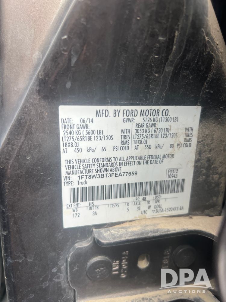 2015 Ford F350 Super Duty XLT 4 Door Pickup (PZ14189, Unit 112428), 4x4, Power Stroke 6.7L diesel engine, automatic transmission, air conditioning, heat, Am/Fm radio, cruise control, power windows & locks, running boards, 5th wheel, rear hitch, shows 144,668 miles.