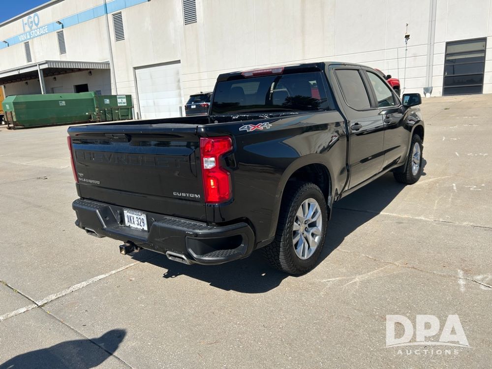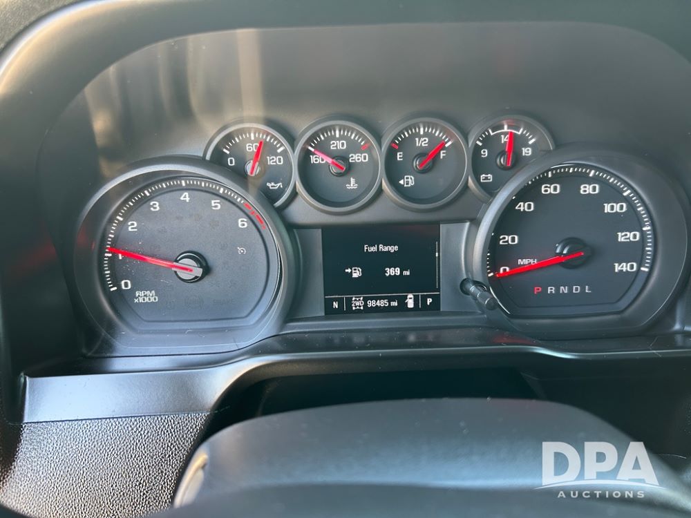 2021 Chevy Silverado 1500 Custom (CP1165), 4WD, L82 5.3L gas engine, automatic transmission, crew cab, 4 door, touchscreen controls, air conditioning, heat, power locks and windows, Rubitrek 2745/60R20 tires, shows 98,485 miles.