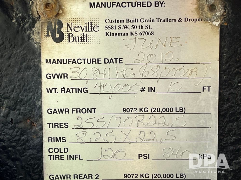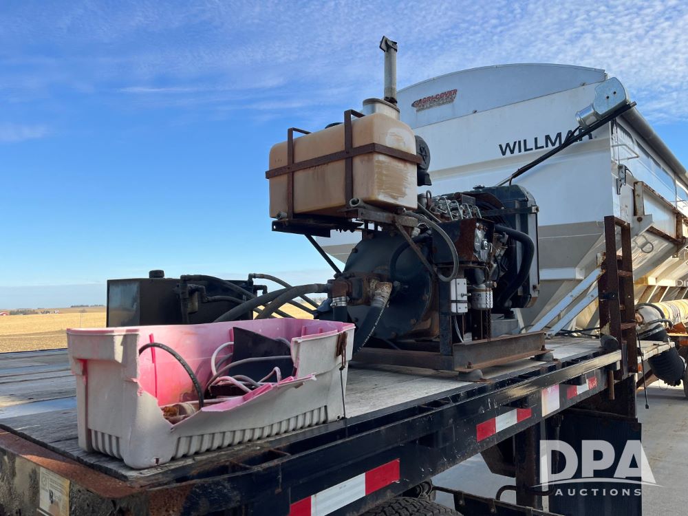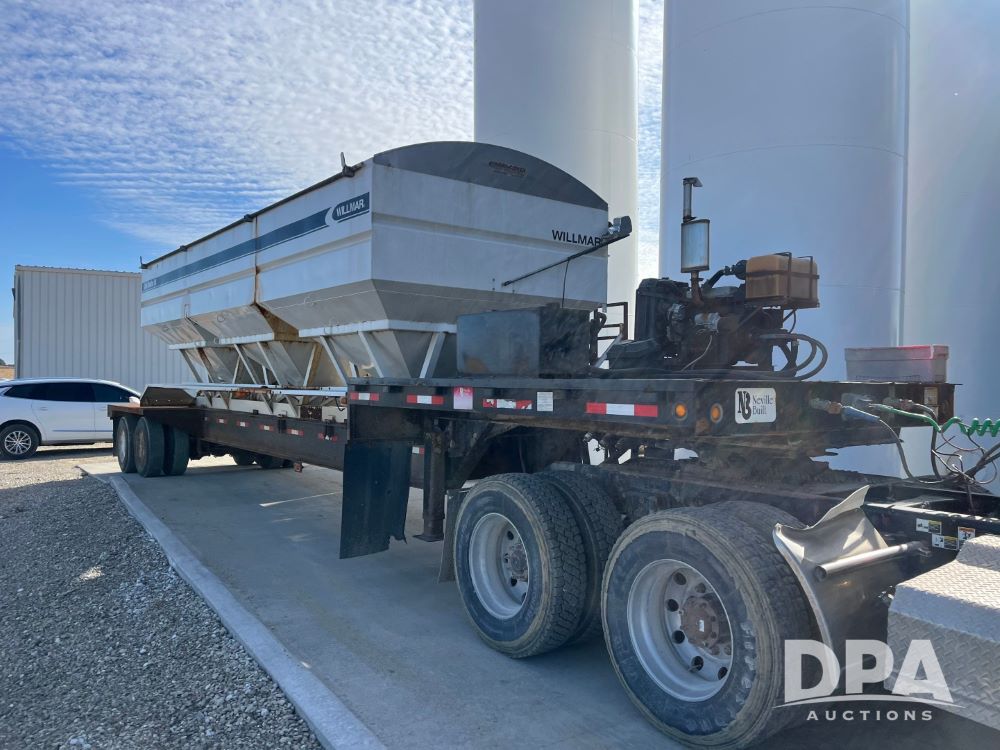 2013 Neville Built Dry Tender Trailer (JN3403, Unit 11891), 2013 Willmar 24 ton dry tender box (S/N AGCW24SSVDN001007), side discharge auger, Isuzu self contained diesel engine, electric roll over tarp, 2013 Neville Built trailer, tandem axle, spring suspension, 255/70R22.5 tires.