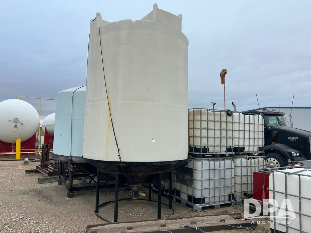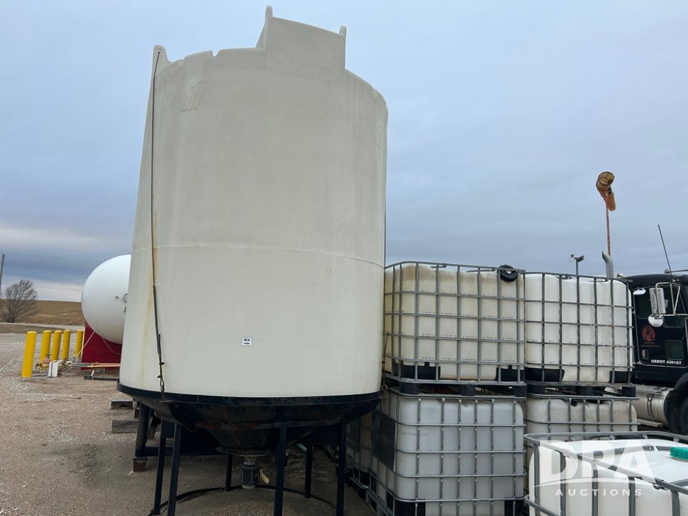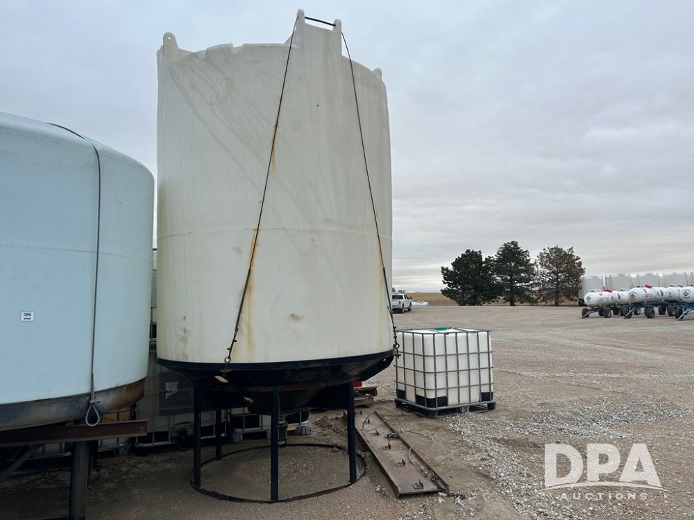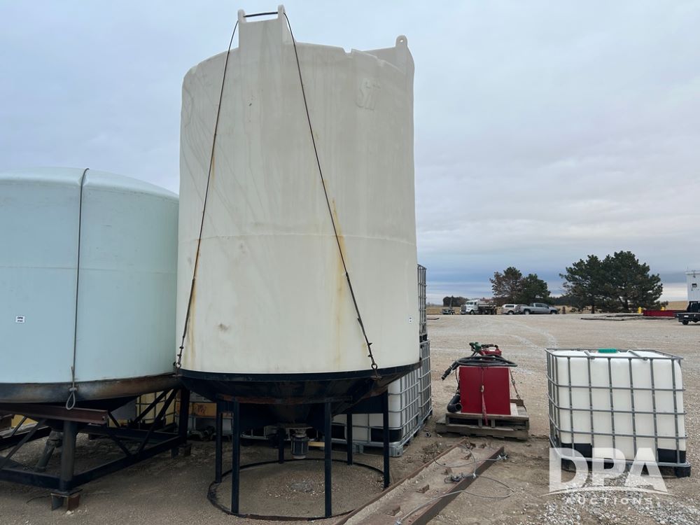 Snyder Cone Bottom Tank (CP1302), Snyder 3,000 gallon poly cone bottom tank, steel stand.