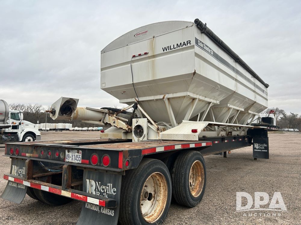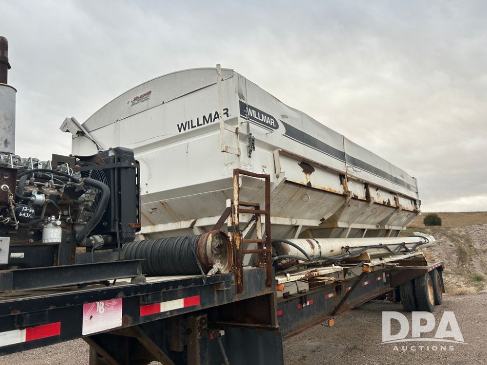 2013 Neville Built Dry Tender Trailer (CP1305, Unit 11902), 2013 Willmar 24 ton dry tender box, side discharge auger, Isuzu self contained diesel engine, Agri - Cover electric roll over tarp, 2013 Neville Built trailer, tandem axle, spring suspension, 255/70R22.5 tires.