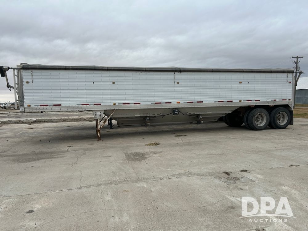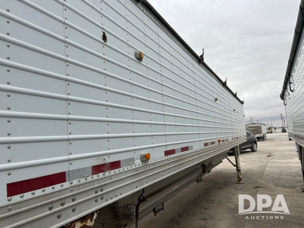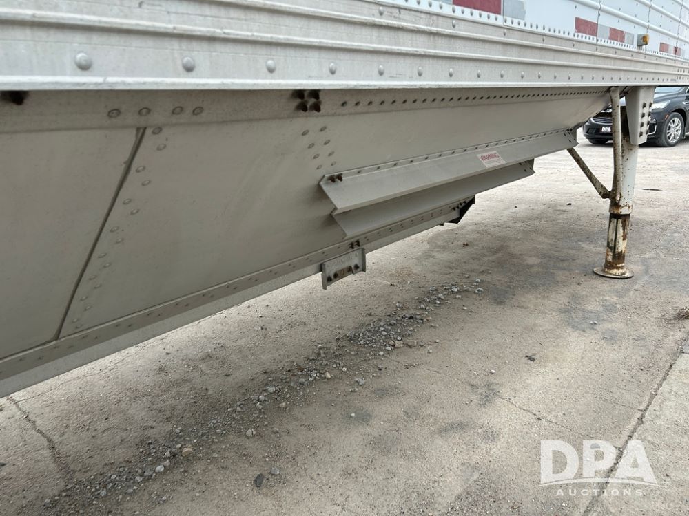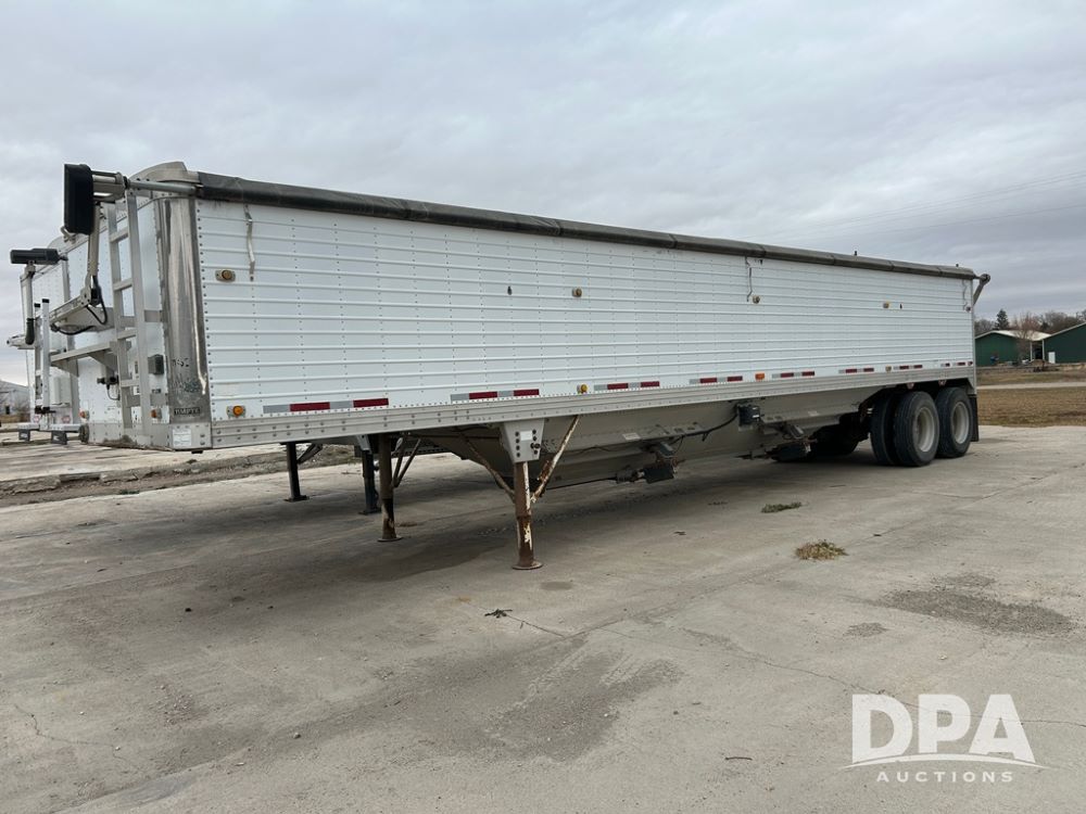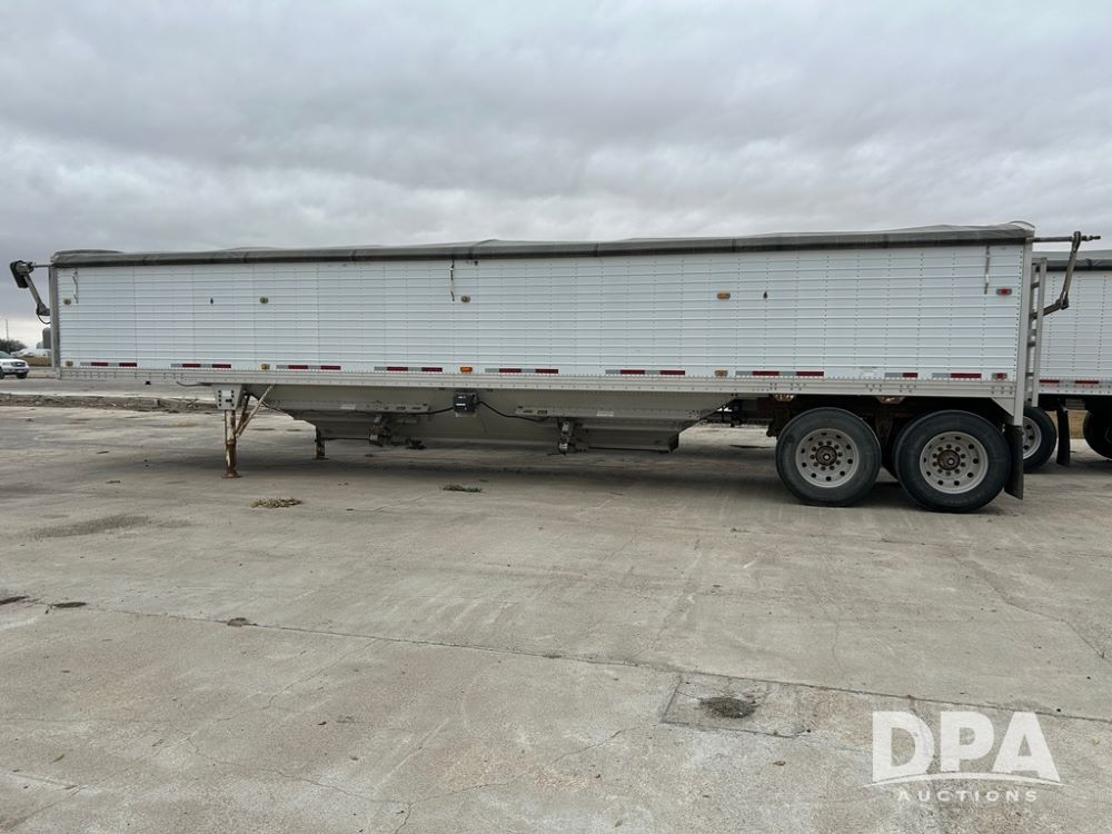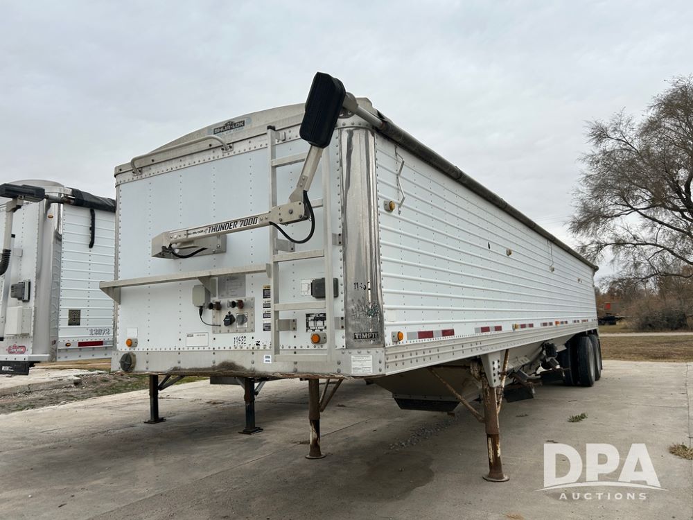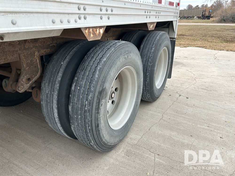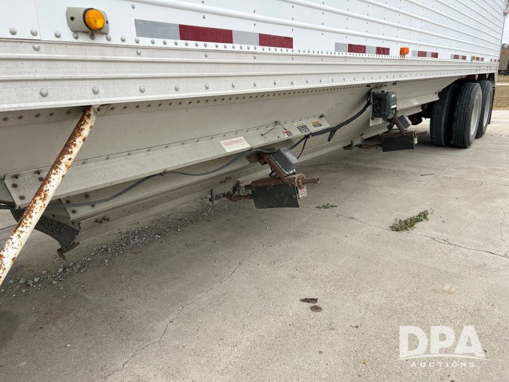 1997 Timpte Hopper Bottom Grain Trailer (CP1316, Unit 11932), 1997 Timpte aluminum hopper bottom grain trailer, Roll-Rite hopper open/closers, Thuner 7000 electric roll over tarp, tandem axle, spring suspension, 11R24.5 tires, aluminum rims.