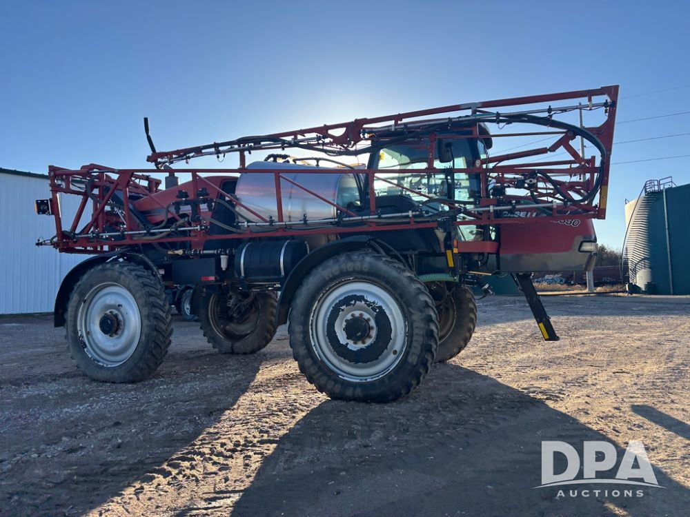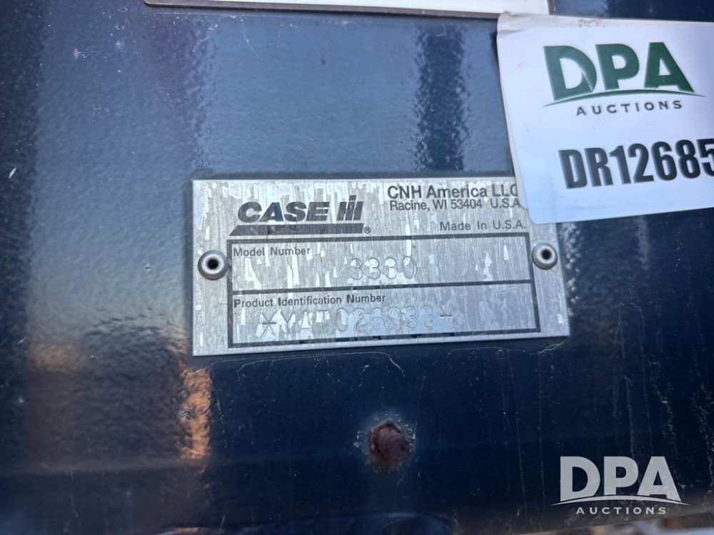 2010 Case IH 3300 Sprayer (DR12685 Unit 25204), diesel engine, hydrostatic drive, 1,000 gallon stainless steel liquid system, 90' boom, set up with front load, pulse nozzles on 20'' centers, Raven Viper Pro controller, stainless steel chemical inductor, Capstan w/AIM Command, cab heat/air conditioning, AM/FM CD radio, 380/90R46 row crop tires, shows 2,952 hours.