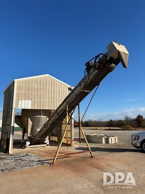 Layco Dry Blender (DR12713 Unit 310557), 8 ton Layco dry fertilizer vertical dry blender and electric drive motor, 35' discharge conveyor w/electric drive motor, digital scale head.