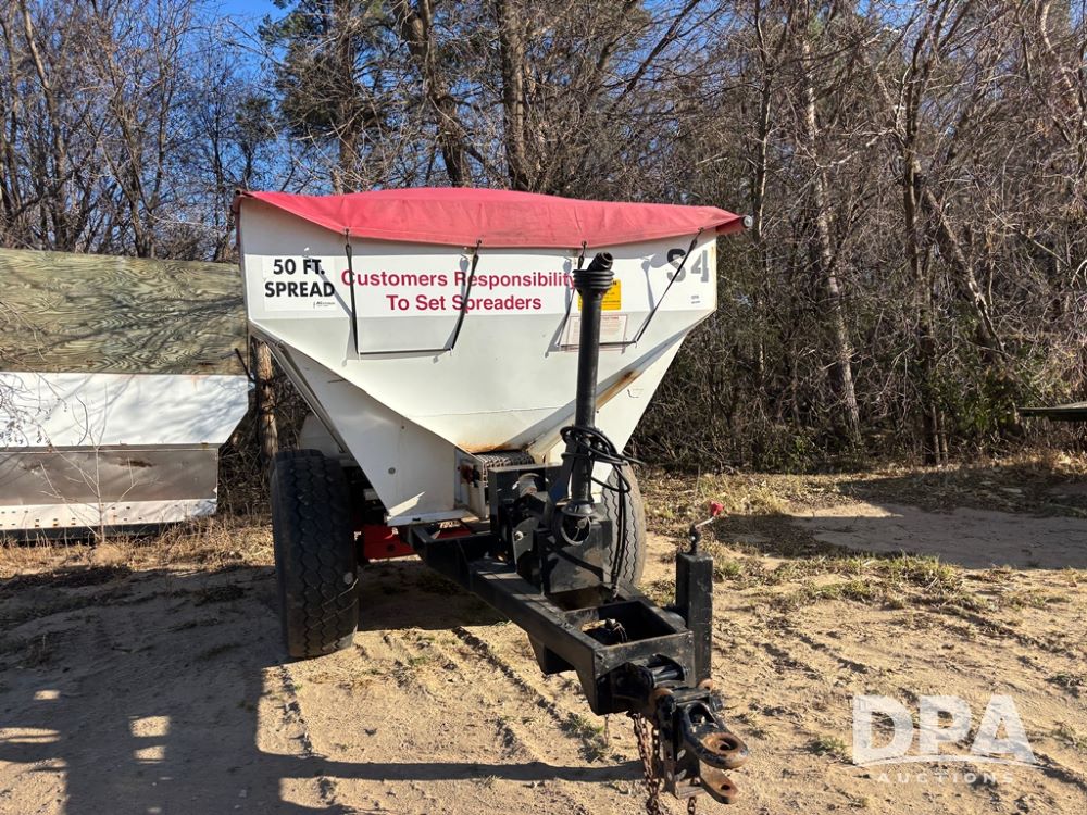 Ag Systems Spreader (DR12699 Unit S4), model AG600 stainless steel dry spreader buggy, 2 speed ground drive web chain, 540 PTO drive rear spinner pan w/hydraulic shutoff, 50' pattern, 385/65R22.5 tires, adjustable axles.