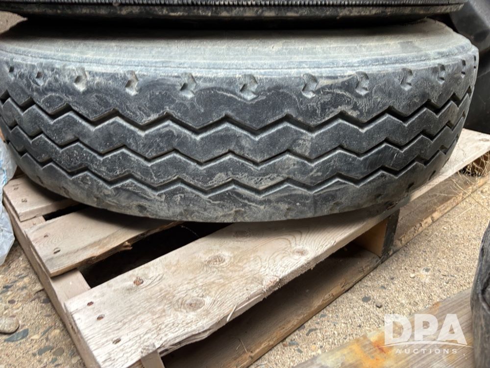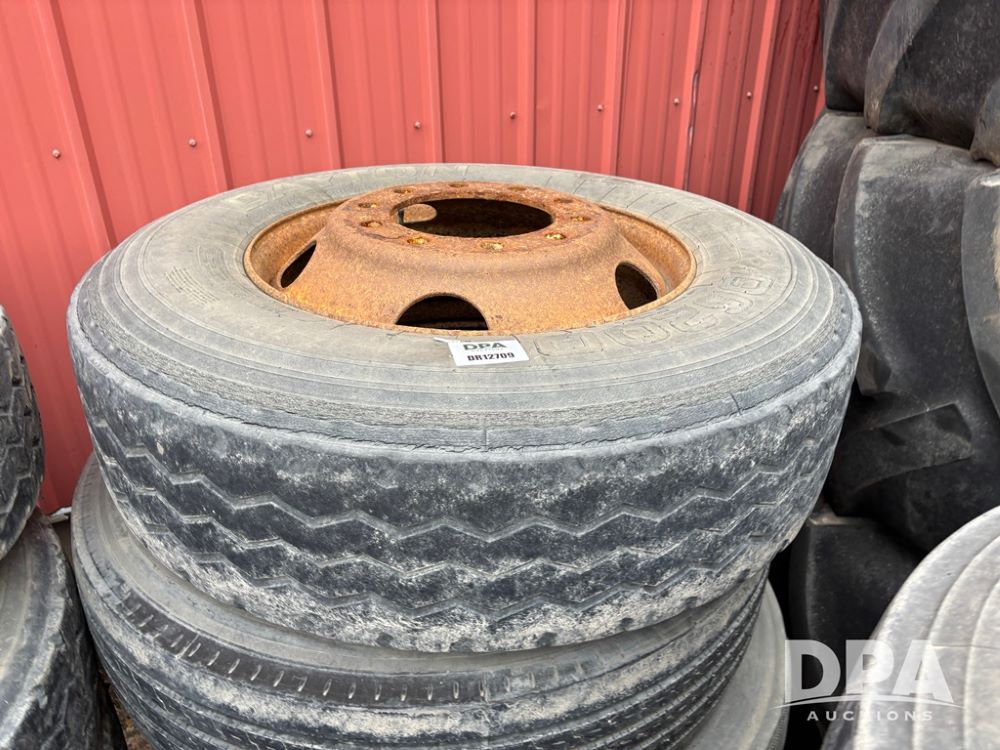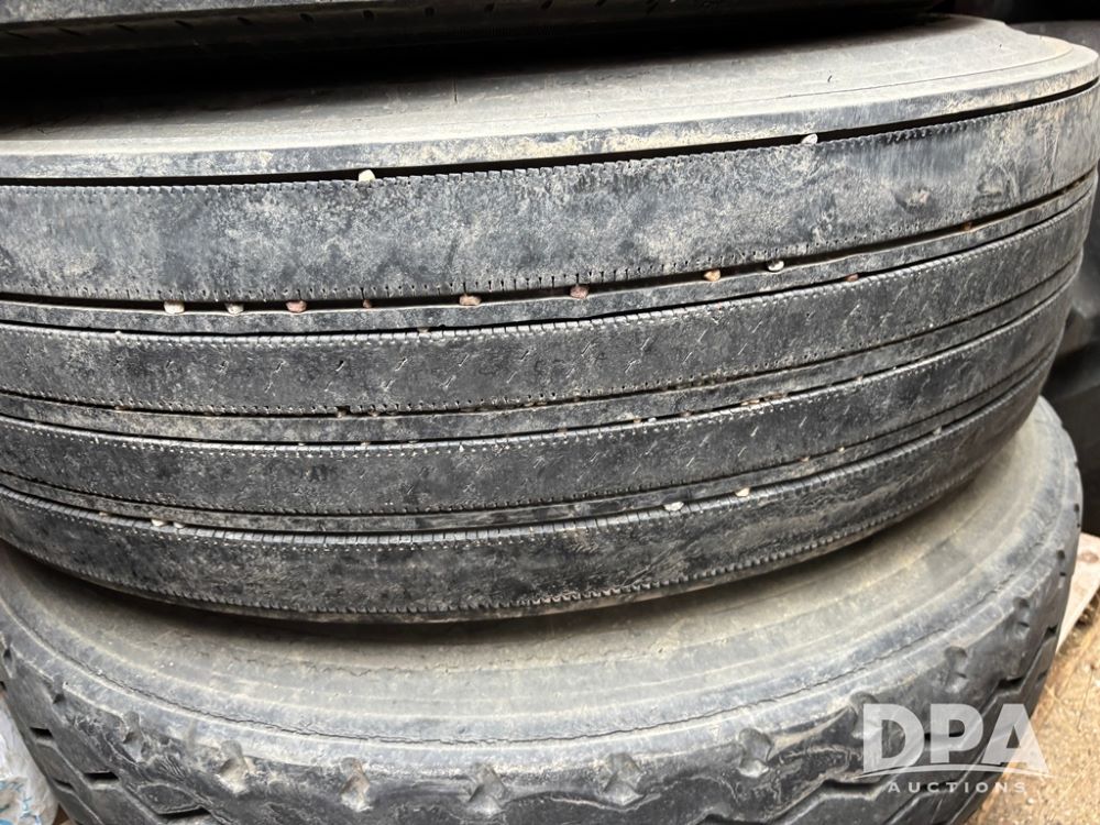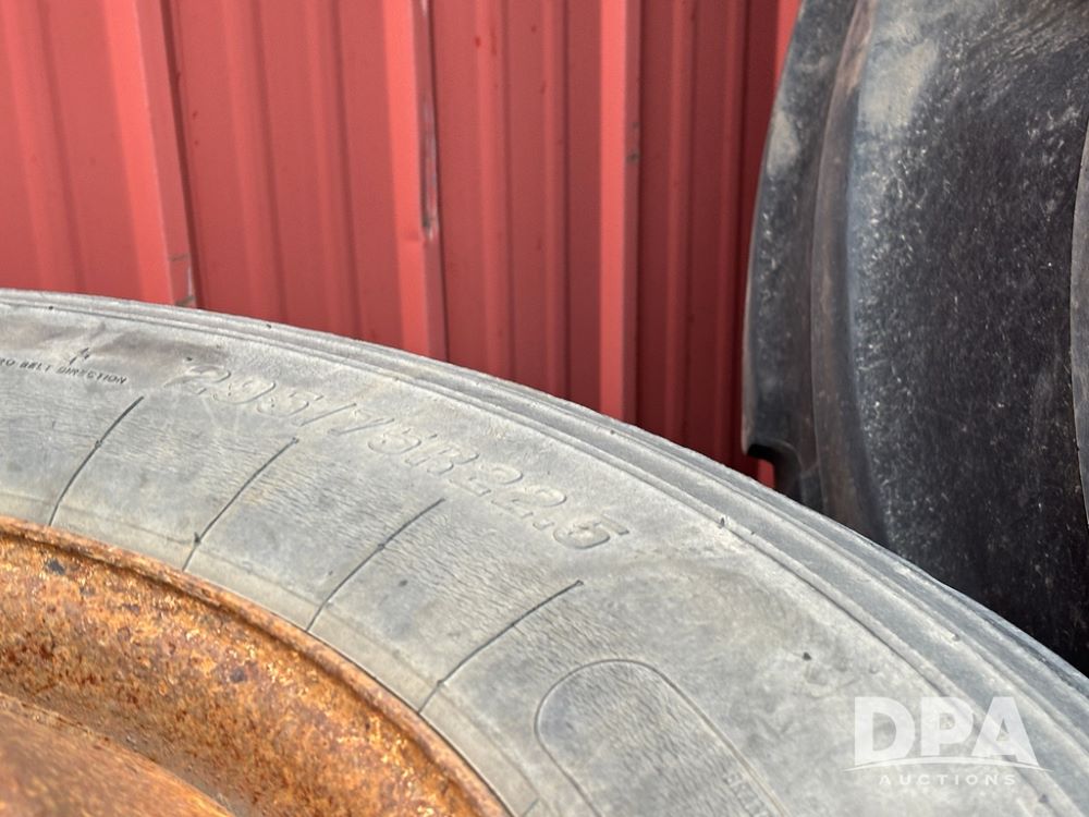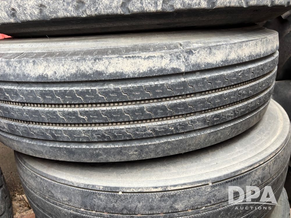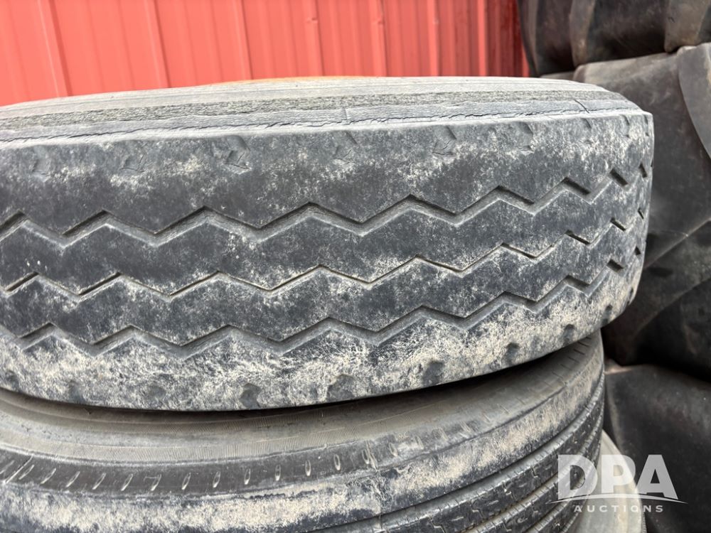 Trailer Tires (DR12709), pallet of (4) 22.5 take off trailer tires mounted on rims.